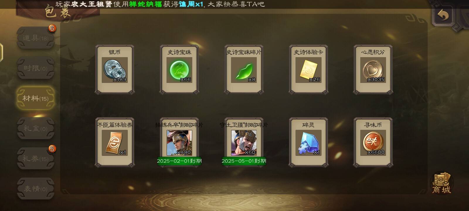 我是校老弟的时候一个史诗武将都没有,更不敢奢望你这俩