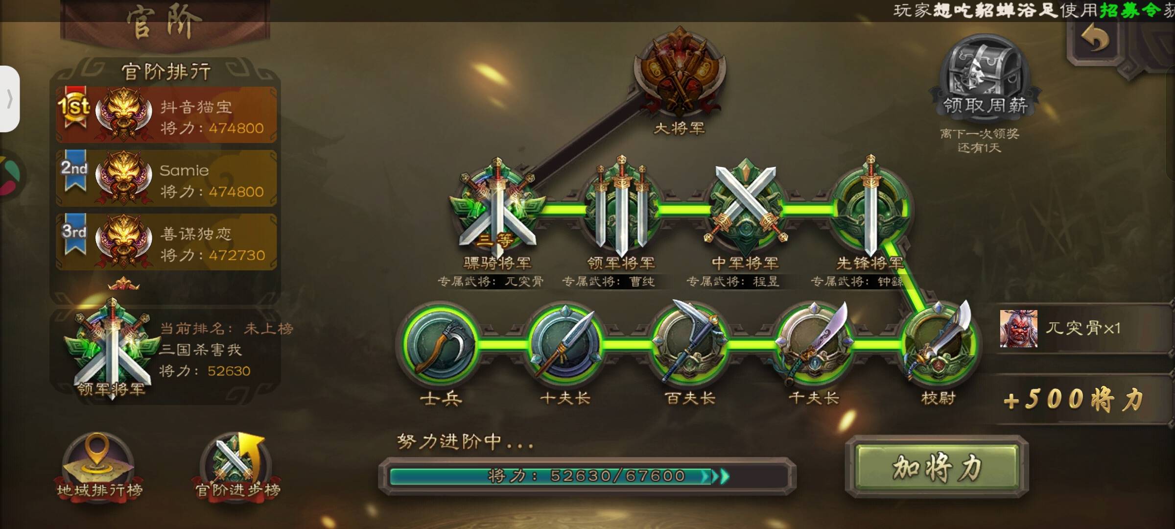 今年终于能登上大将军官阶了,十年青春终于能化上句号了