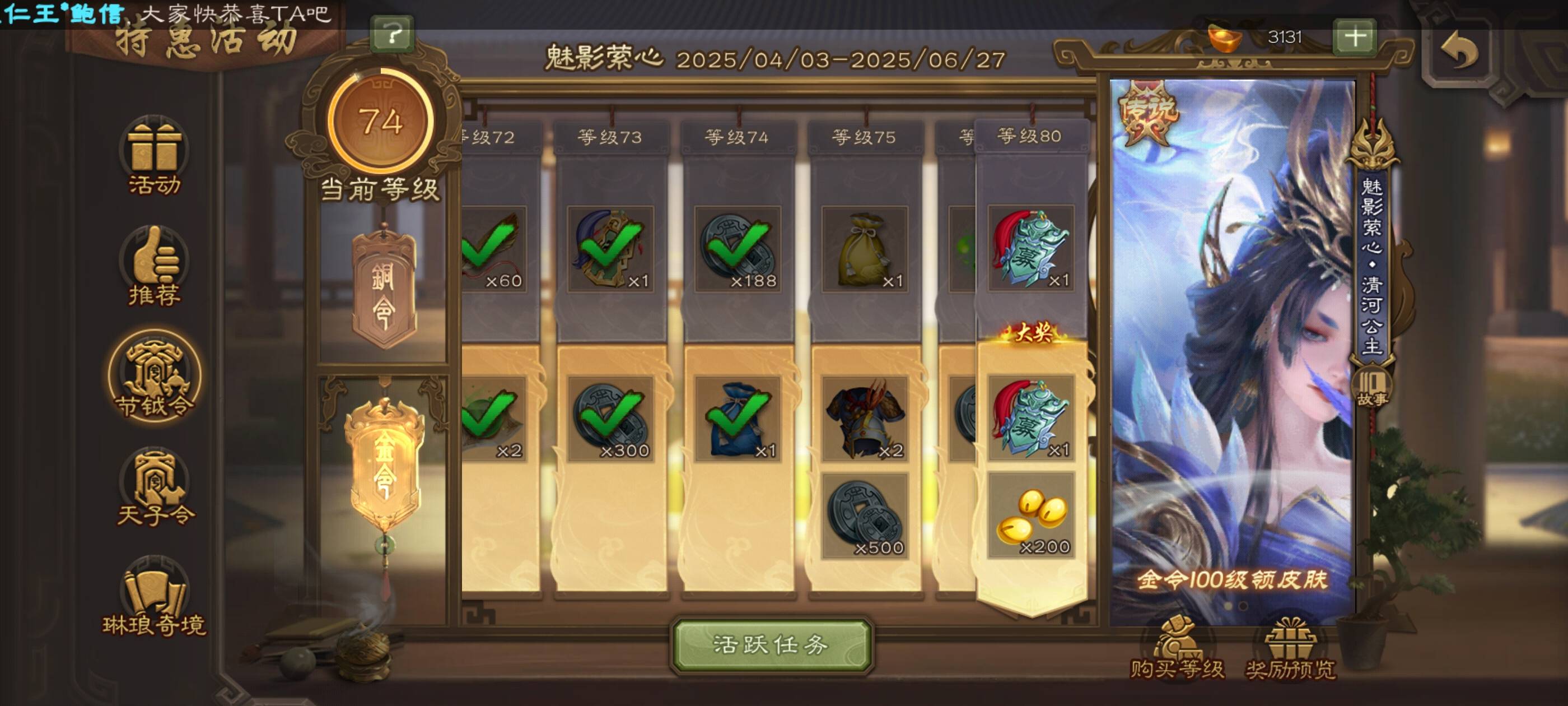 一直刷武将演练就可以了,进去选完武将直接退,差不多很快就能刷完一个赛季的任务#武将 #清河公主 #万物清明 #天子令 #节钺令