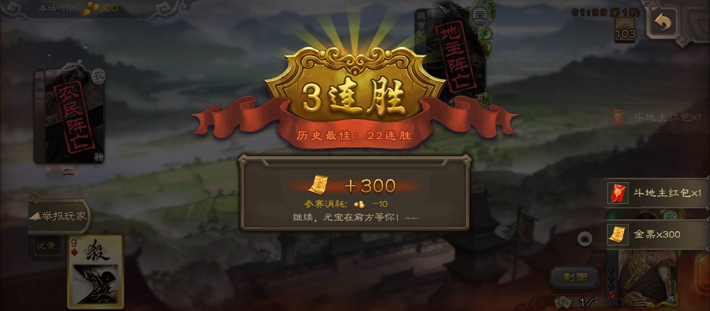 这把斗地主刷双色闪没刷到,双色桃闪也凑合,至少让地主很难秒一个了。地主还自信开决进,还不锁神周瑜技能,只要另一个农民选择回一血,这把就是稳赢了。