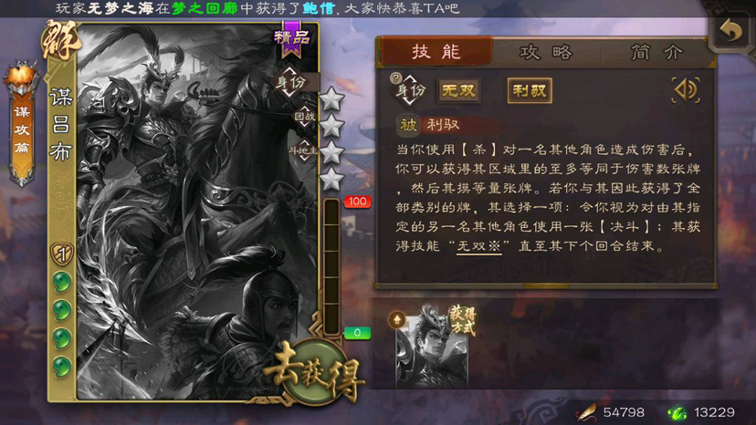 总的来说是可以玩的一个武将了,至少有增伤,有过牌了这是,大家觉得强度如何呢#三国杀将星筑梦 #谋吕布