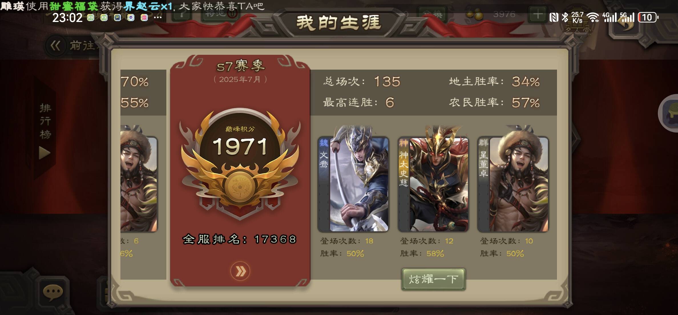 来自版块:三国煮酒上赛季爱抢地主,又没什么强力地主于是爽输,最低掉到1700。这赛季虽然没打多少把地主,但从胜率也可以看出来强易对地主的提升有多大。虽然不知道新的恃强对地主农民影响有多大了,但总得来说肯定还是一个地主优势的局面。