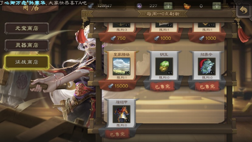 萌新优先买四星的双鱼玉佩加生死状,月英、孙策、张春华都能用,玩关张可以买心火丹、观星扇,这些就够通全关了,如果只是每天签个到领1000币不打后面的关,这些也不用买
