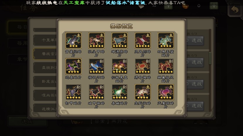 征战天下白票五星灵器、碎片攻略