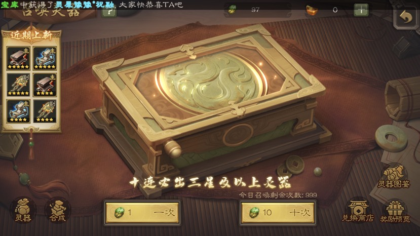 把不好用的灵器分解掉换成玄元石,等待自己想要的灵器刷新,出手拿下,不氪金的情况下能分解的灵器不多