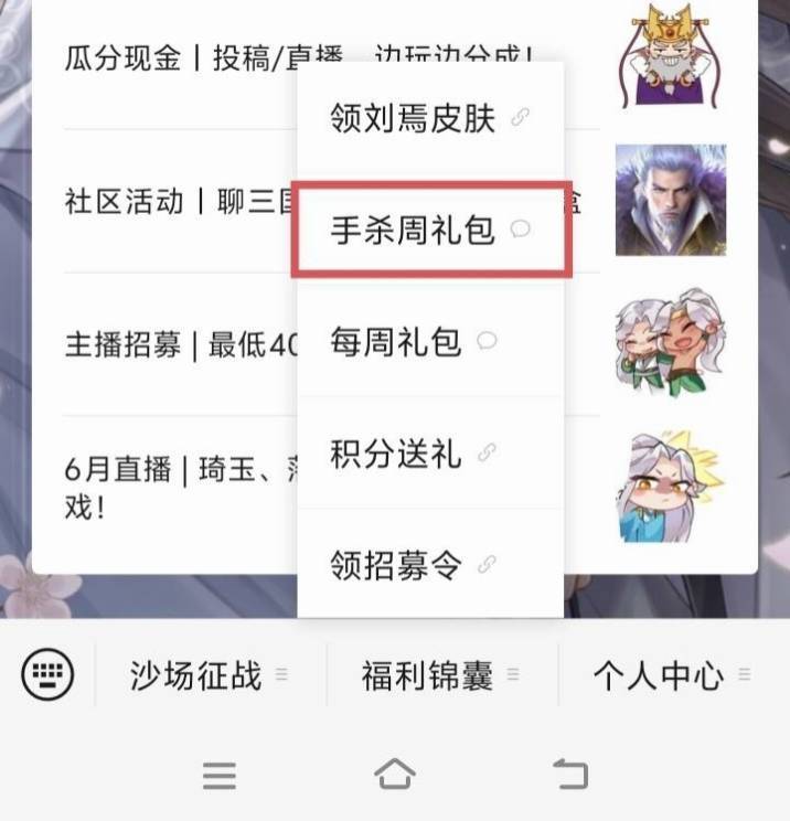 微信服务号 三国杀小游戏-福利锦囊-手杀周礼包