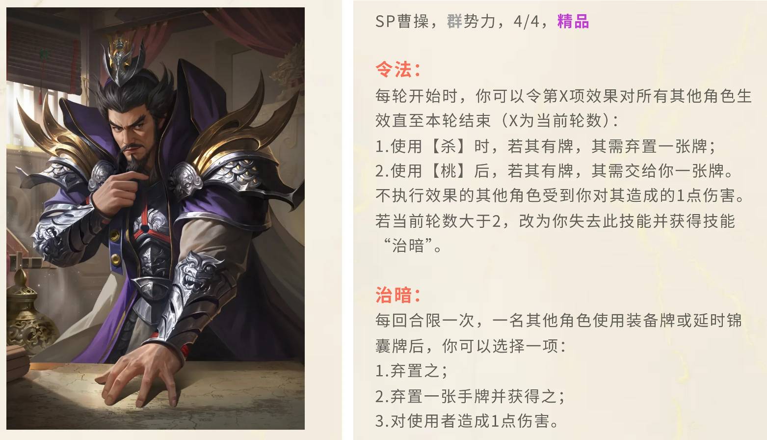 2、SP曹操,天工宝库上线,新晋的军八搅*棍,全场所有人上装备都得经过他同意,甚至能直接废掉刘焉的丈八蛇矛。