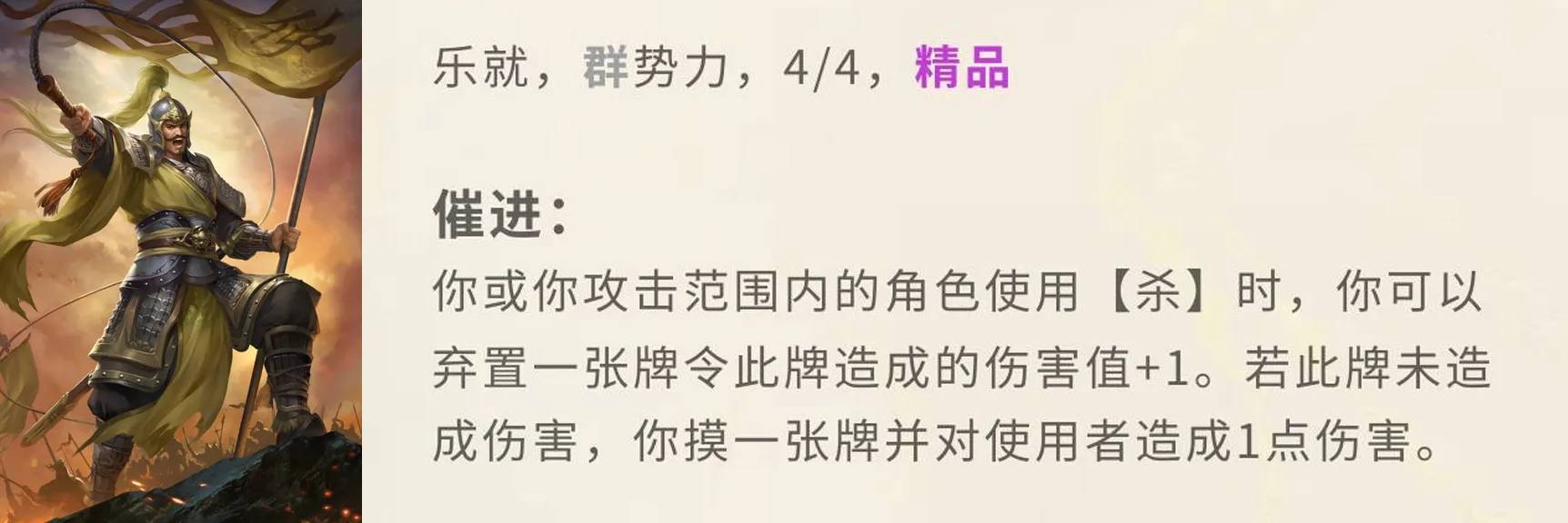 3、乐就,排位大师奖励,精品之光,低配版大攻车,技能简单粗暴又不失灵活性,排位时配合谋夏侯渊、关银屏这类多刀武将,或者搭配谋郭嘉这样的卖血将,效果都会很好。