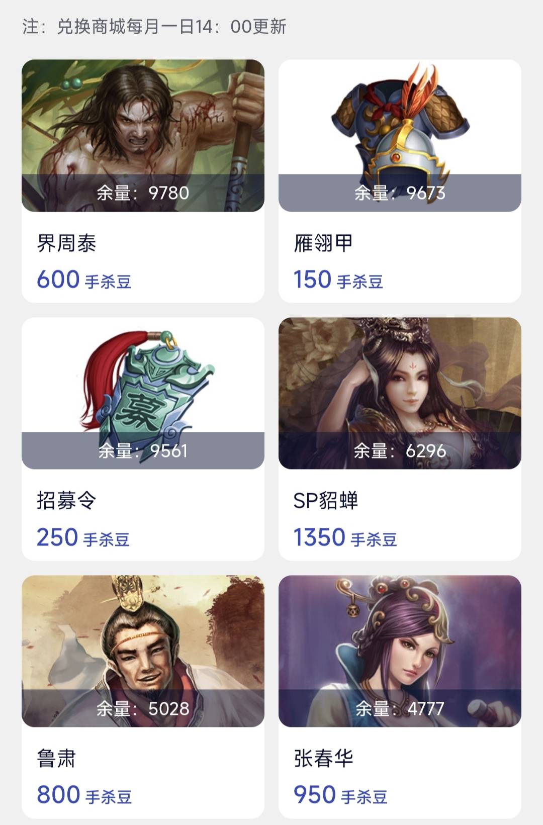 7.招募令、雁翎甲、欢乐豆、菜篮子这些推荐手杀豆充裕的玩家获取。