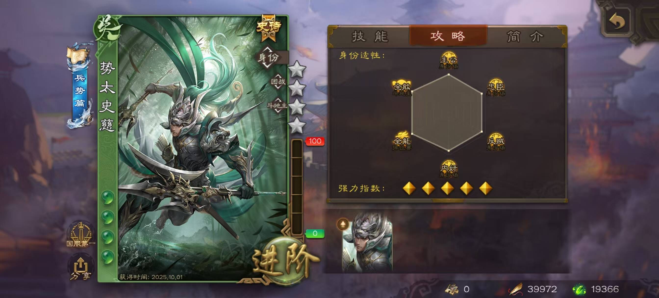 攒势太史慈碎片大半年,终于通过攒元宝买返场盒子,凑了58个碎片直接换了新能源,别人靠欧**肝,真是难绷。。。。。