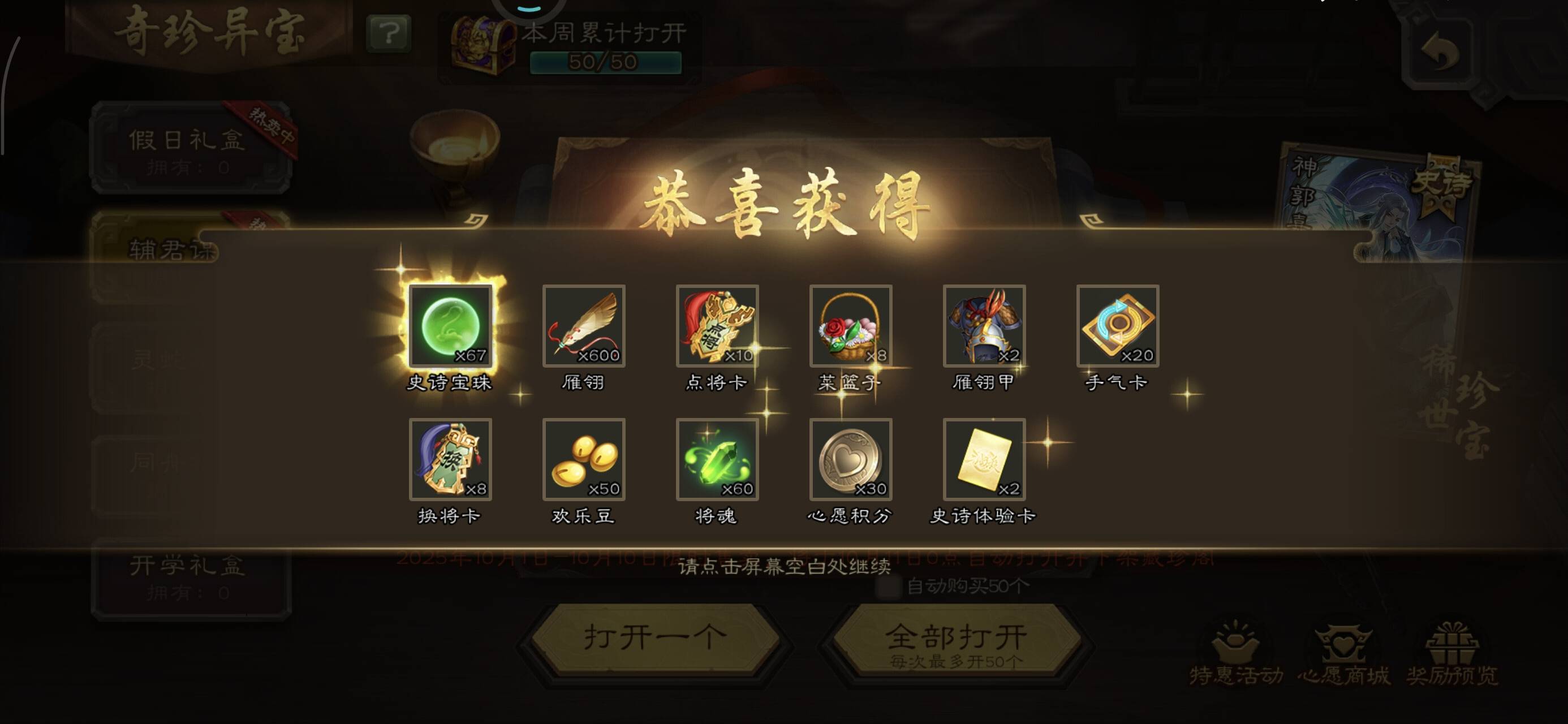 跟朋友网吧玩回来凌晨4点开了80个盒子中了66,第一次中66,刚前段时间攒了66颗珠子换了势魏延,本来还在势魏延和草帽之间犹豫的,现在中了66直接全部拿下#国庆 #曹髦 #魏延