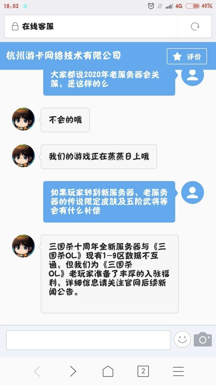 来自版块:三国煮酒2018年,三国杀因技术原因推出新服“三国杀十周年”,但新老服务器数据不互通,引发老玩家担忧。有玩家询问客服老服务器是否会关闭,客服回复称“不会的,我们的游戏正在蒸蒸日上哦”。然而当时三国杀正面临新武将不断推出、内购严重、平衡性差等问题,游戏发展呈下滑趋势,客服的这句话与实际情况形成巨大反差,充满了讽刺意味。