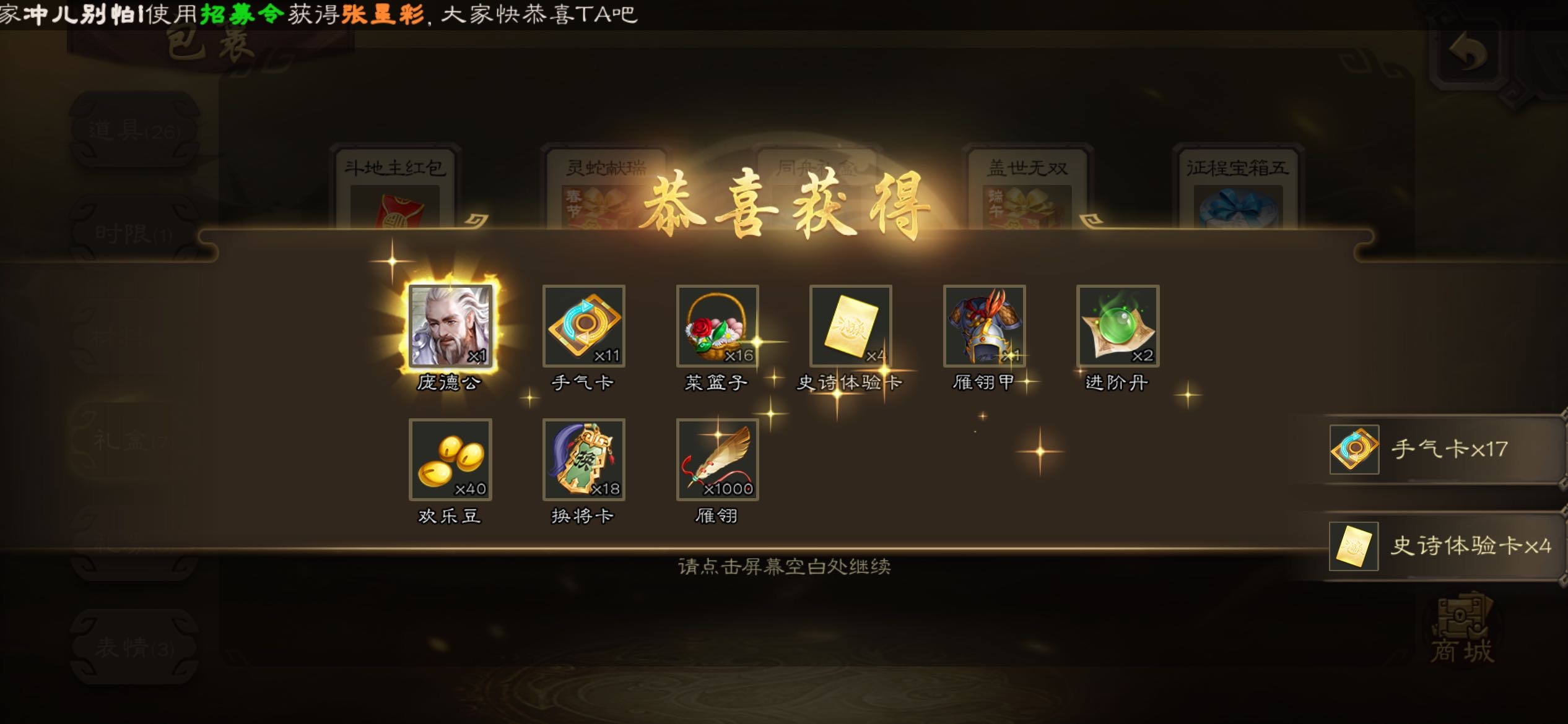 刚刚福袋看出来庞德公,但是武将界面里面找不到耶,咋回事