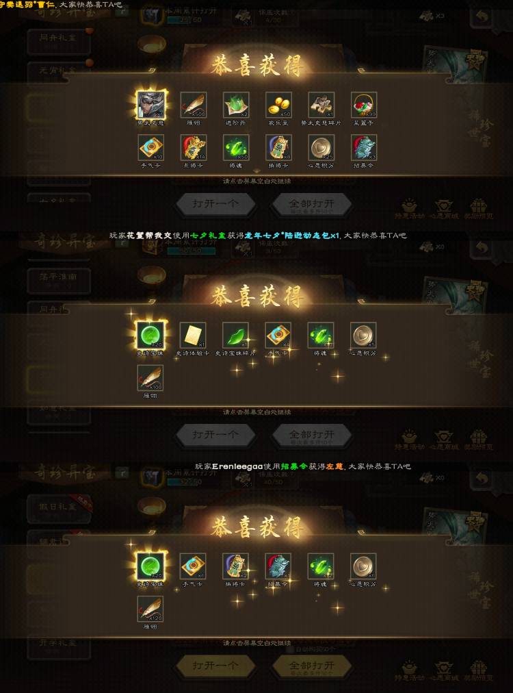 来自版块:三国煮酒如图所示,第一个势太史慈是节钺令攒的50盒出的,在今年的4月28日,第二个势太史慈也是节钺令给的5个盒子出的,是在4月30日,就在昨天,我又通过免费的6个盒子出了第三个势太史慈。🙏🏻