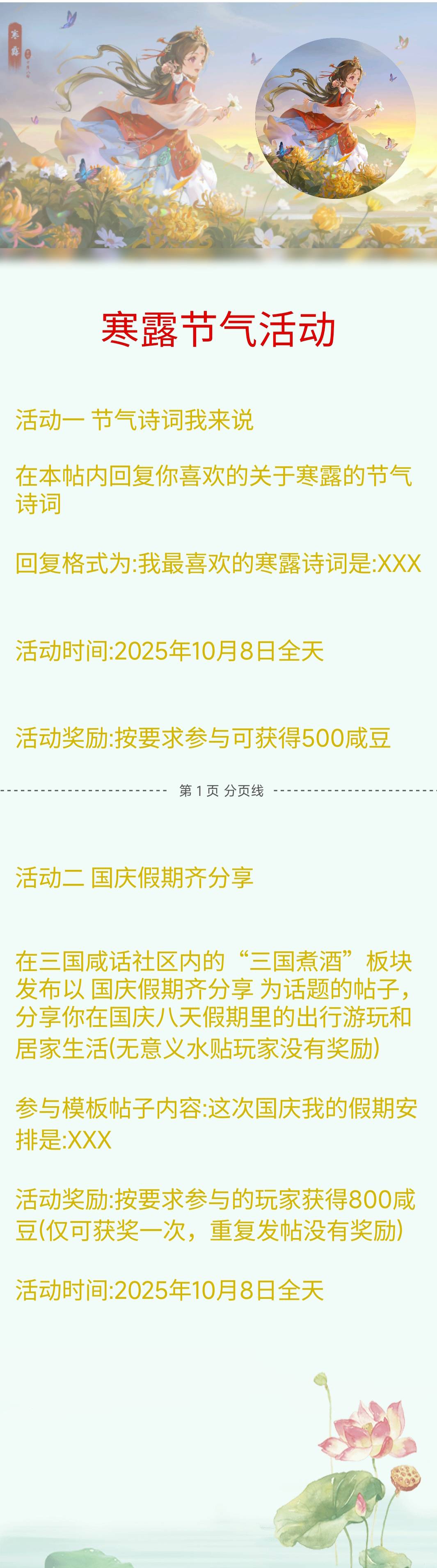 发帖活动不要发与活动无关的无意义水帖,需要按活动要求发帖才有奖励#国庆假期齐分享