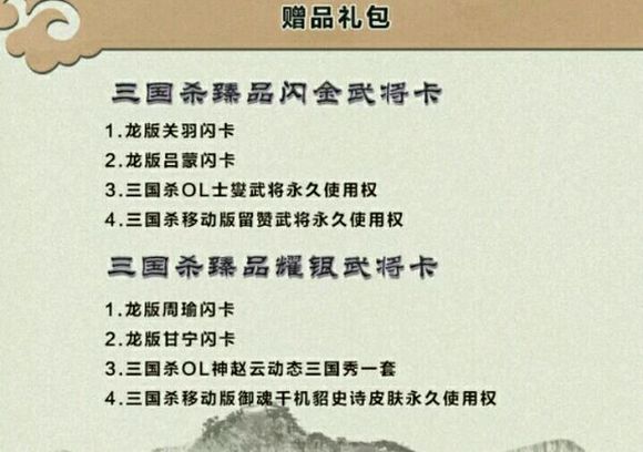 除了以上正常渠道获取,其余的方式基本不是普通玩家需要考虑的,例如2017年12000一套并且还限量的龙版金卡、2018年买龙凤版三国杀概率抽取的留赞、高校联赛的季军奖励等等,但是也让一部分的留赞激活码流入市场,17年的tb价格在600-700左右,而因为签到令的存在,单留赞初始号却只需要几十块钱