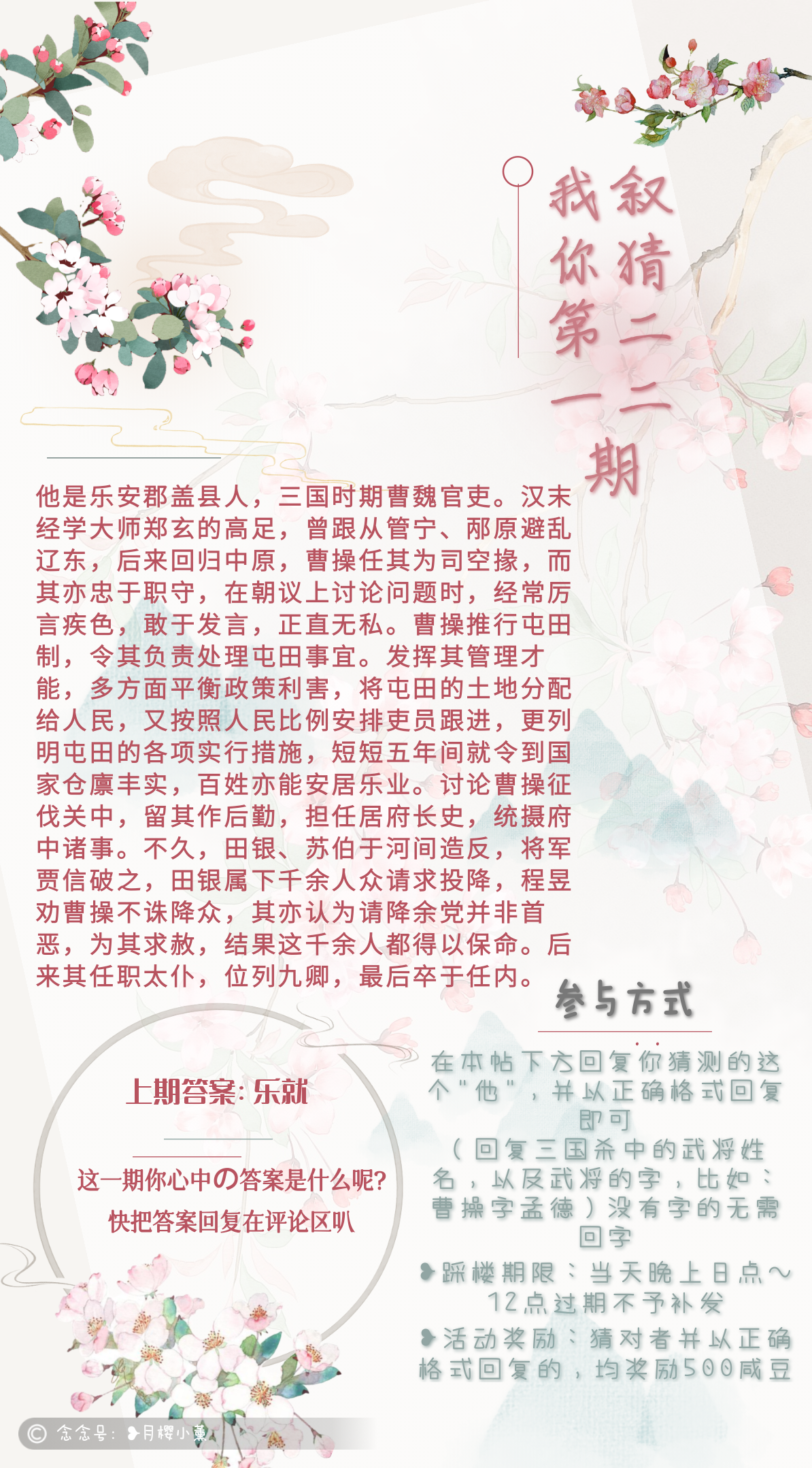 ❥举例:马钧字德衡,没有字的无需回复字,只回复武将姓名即🉑✨