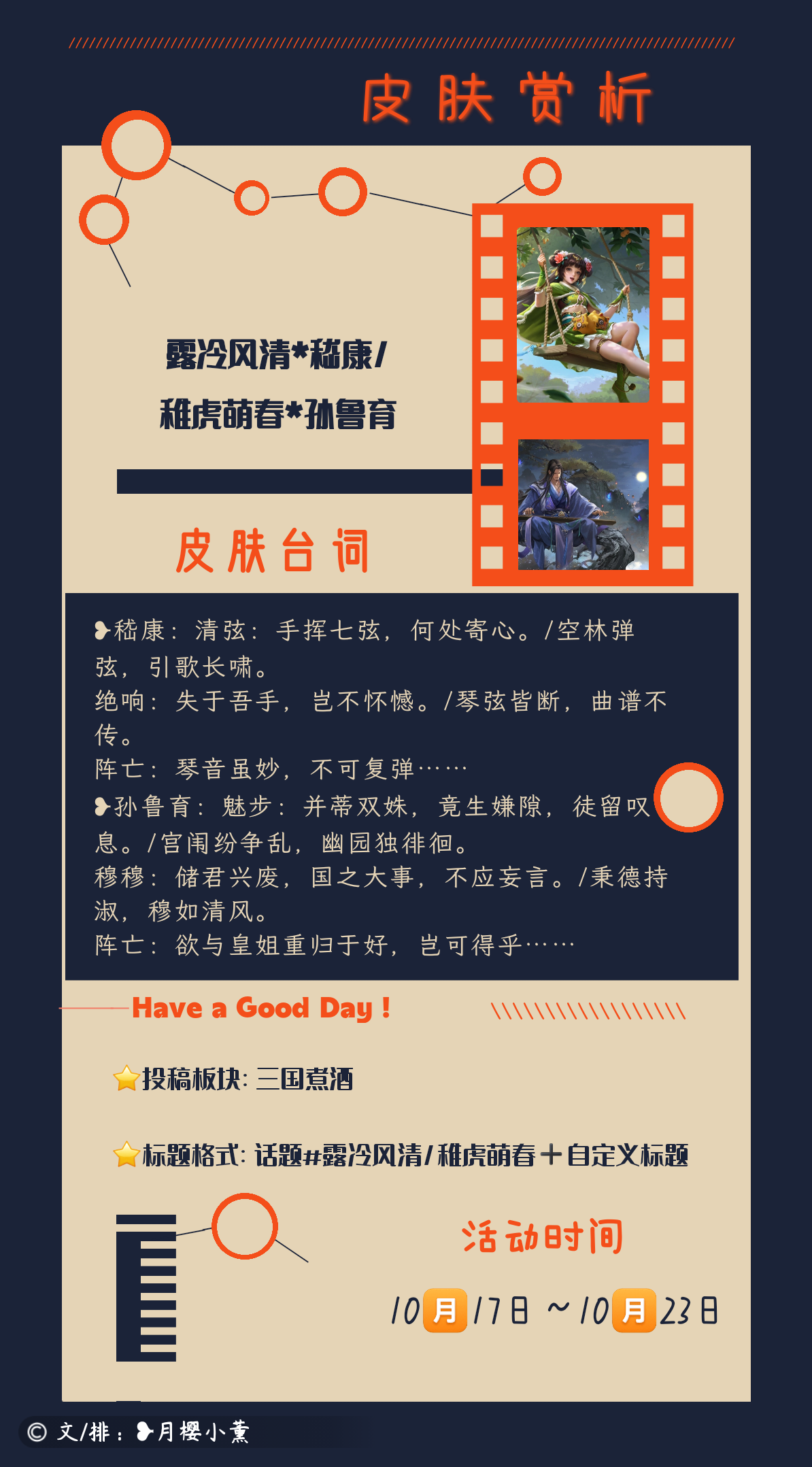 【咸话专栏】征集皮肤赏析:露冷风清*嵇康/稚虎萌春*孙鲁育