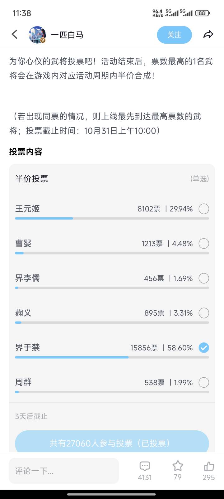 先出预热,让大家发贴拿热度,然后毫不理会玩家的意愿,这次半价投票的选项,我敢肯定的说没有一个武将是玩家发帖说要投TA的。为什么我要说挺好的呢,是因为让更多理睬官方,相信官方的人能看清它的嘴脸,知道它们根本没有公信度可言!