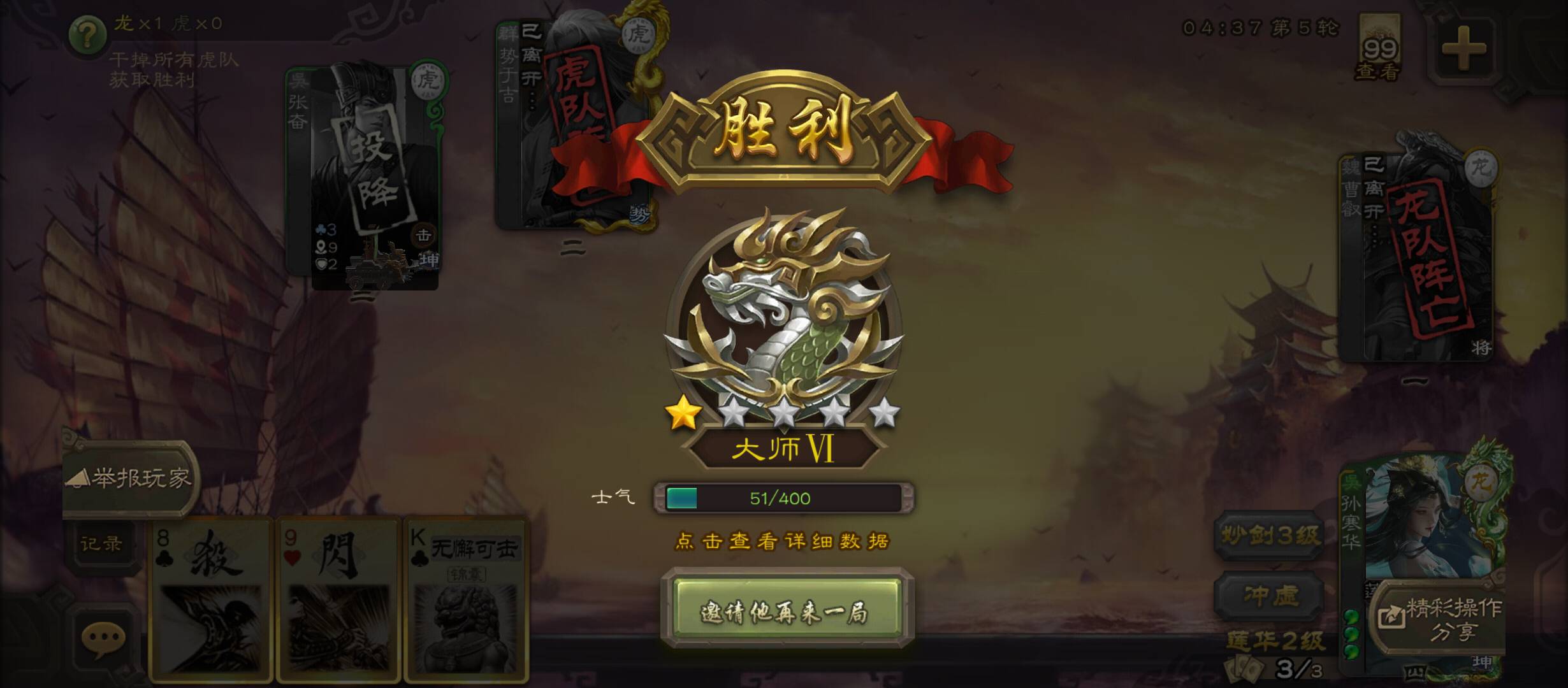 张奋加势于吉,开局第一轮就把曹叡秒了,孙寒华能一打二赢下这局还蛮不容易的