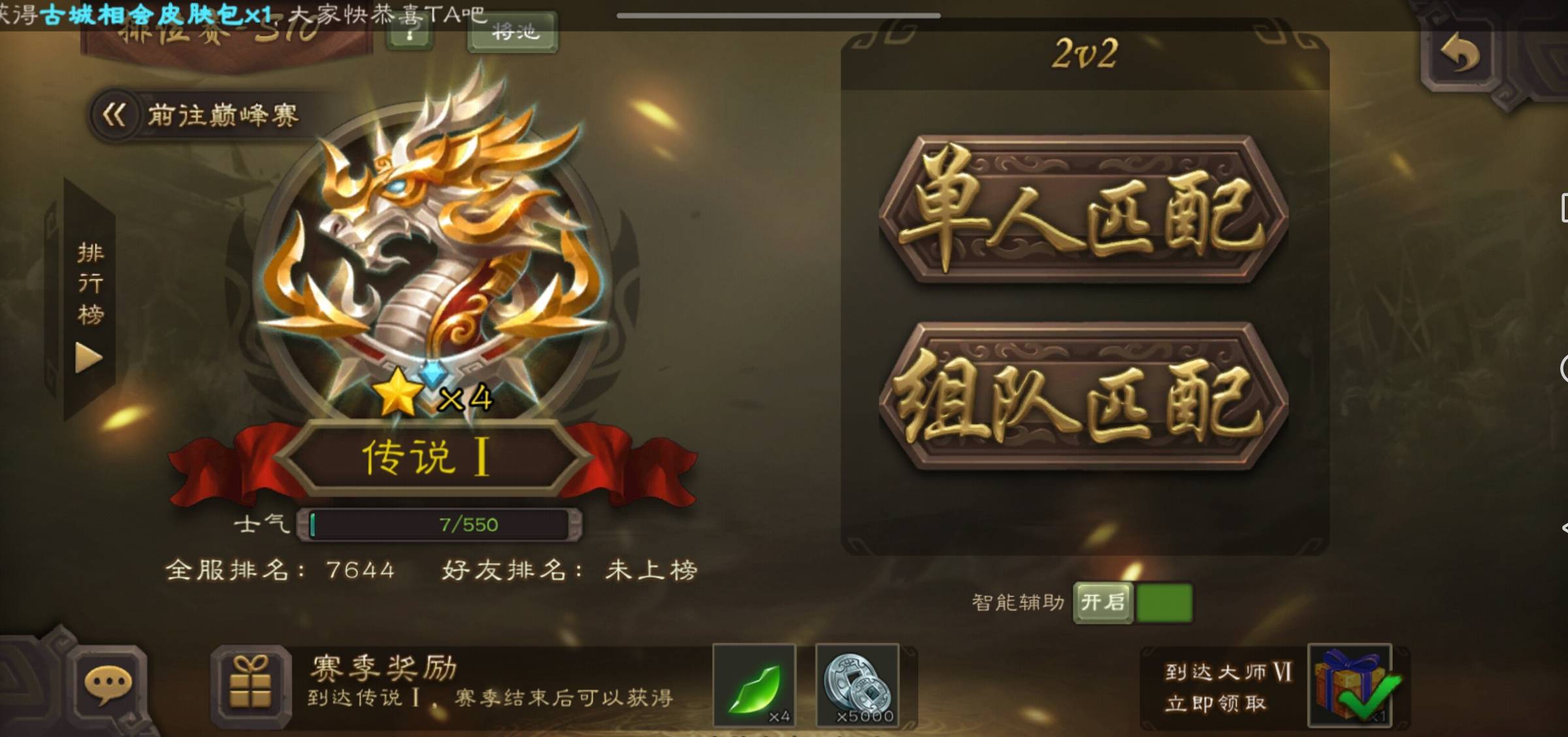 第二次传说,平时打到大师就懒得再打了,这两天临时起意试试,结果打了三四天就上传说了,巅峰赛还是相对好打一点,极少遇到逆天队友,不过旺卡偶尔也会武将池和牌堆制裁#三国杀将星筑梦