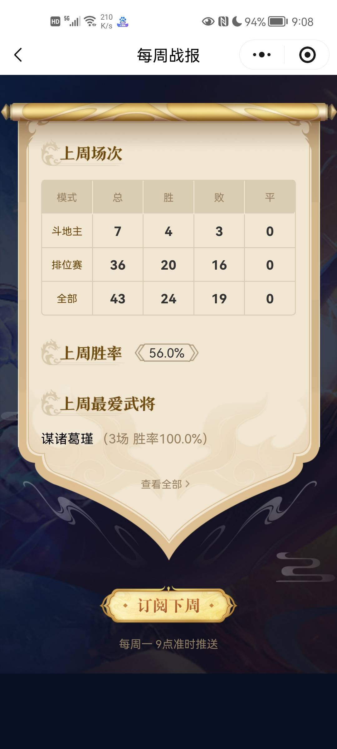 上周胜率56