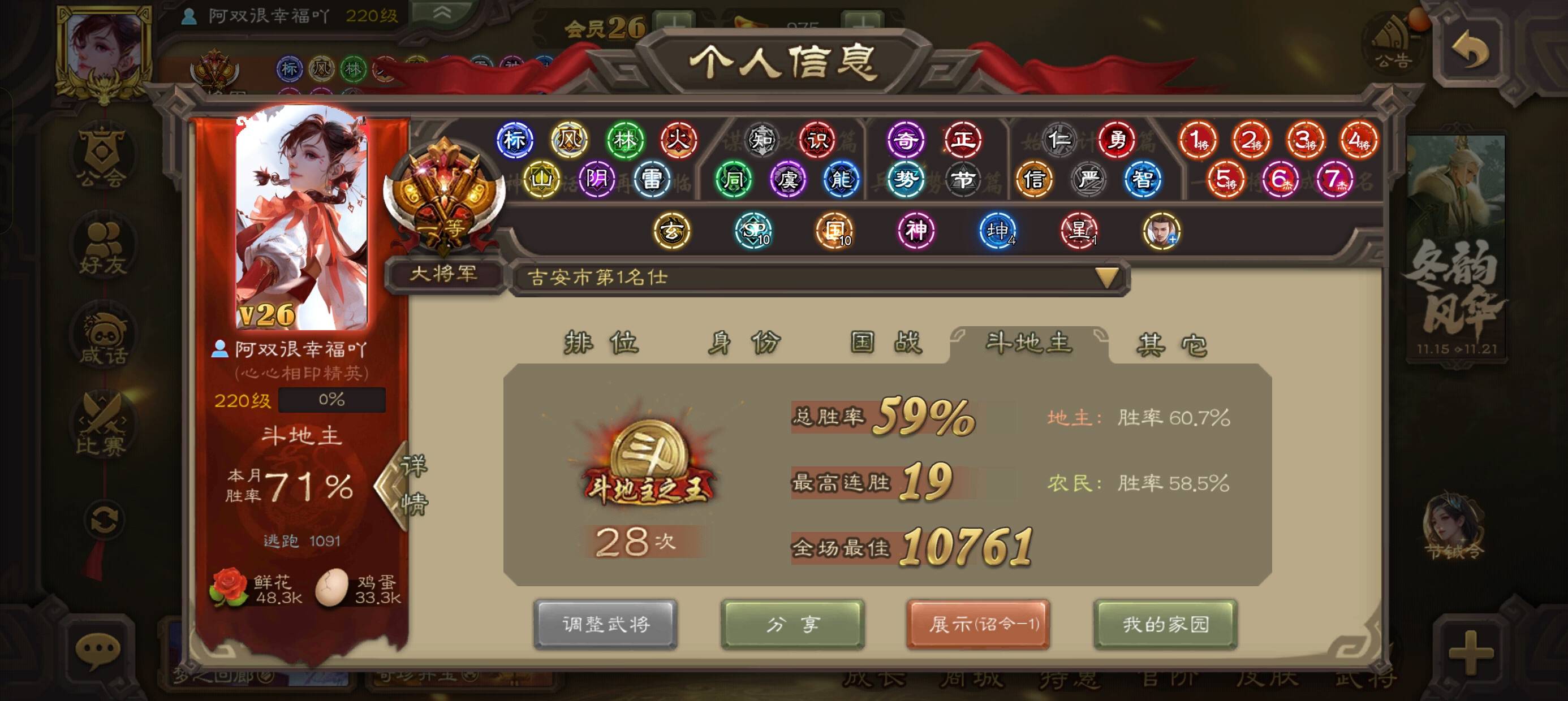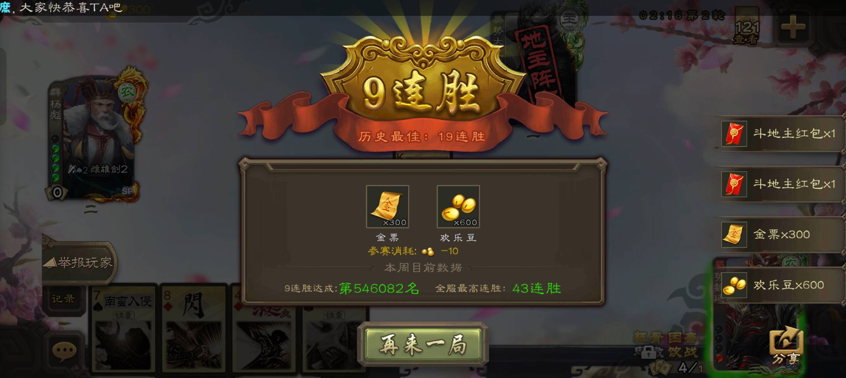 因为快两点了,想着末班车,最后两把不抢地主,猛猛送花遇到好兄弟,成功拿下第28个斗王