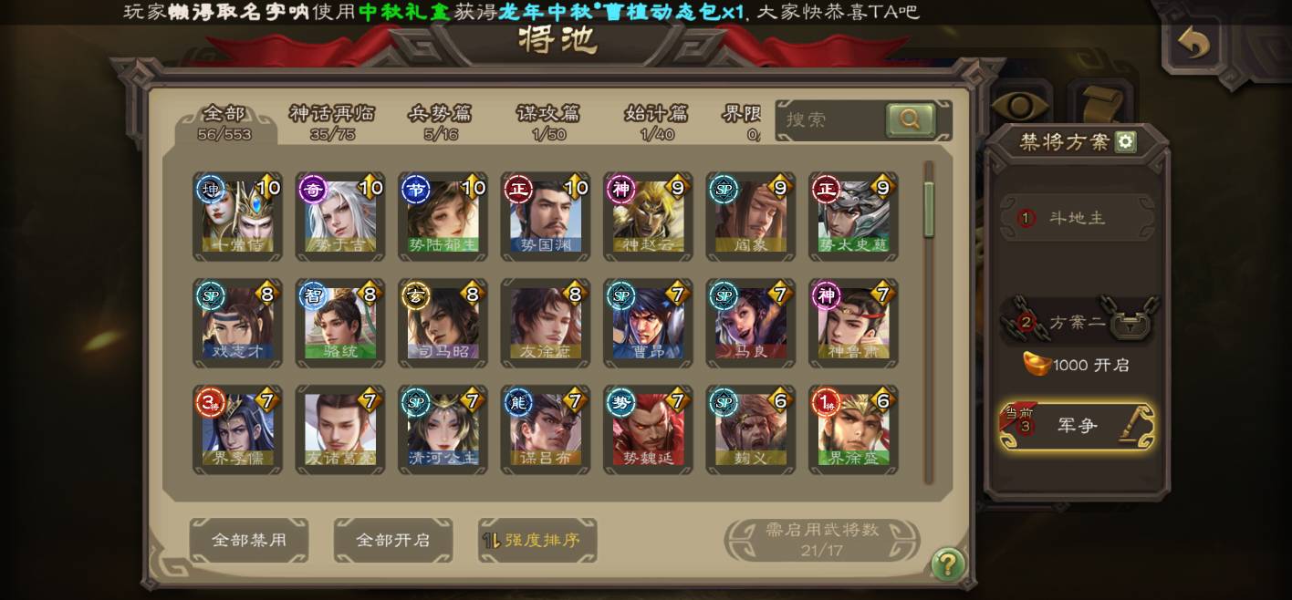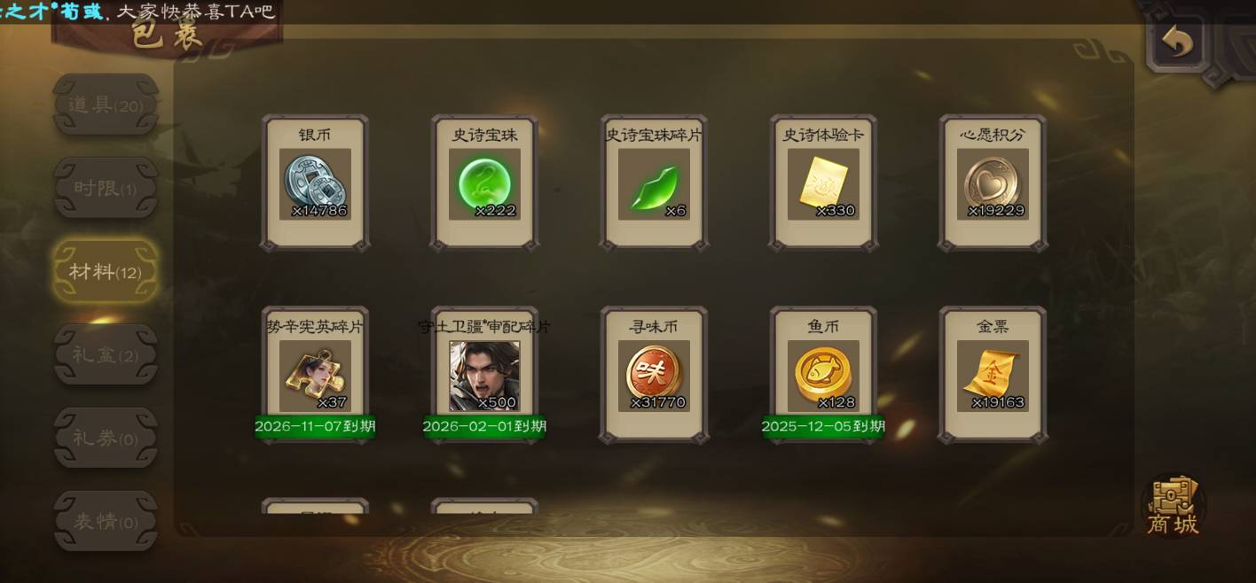 这是目前将池,攒了222宝珠,打算等神姜维,崔芙,老武将有点纠结,不知道换谁,积分攒满以后打算先留着,等明年权一再说