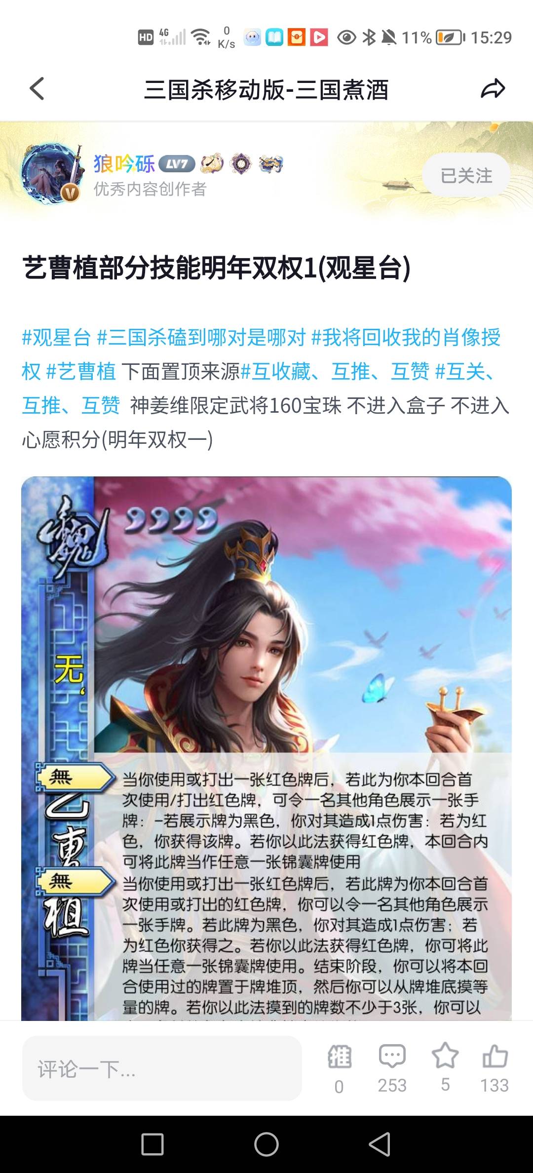 观星台从未说过任何有关于艺曹植相关内容。帖子中的消息来源不实#三国杀磕到哪对是哪对 #三国杀将星筑梦
