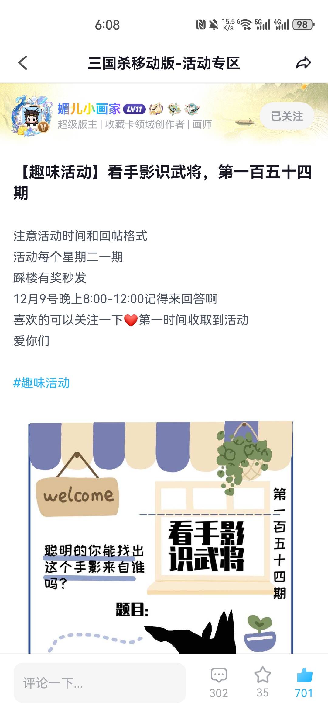 🐲主题:【趣味活动】看手影识武将,第一百五十四期(谋张角)
