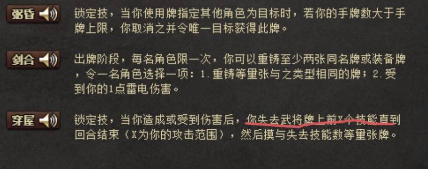 根据三国杀官方的标准技能描述,"武将牌技能"与"所有技能"是有显著区别的。下面是一些例子: