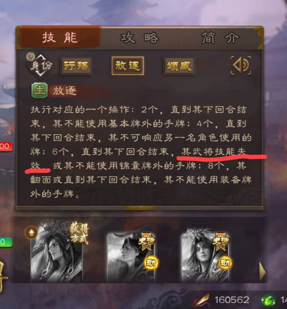 已知界于吉的"缠怨"明确写了"其他技能",而非"武将牌技能",是可以锁飞扬跋扈的,那么曹髦的"放逐"写了"其技能",也应该可以锁飞扬跋扈。