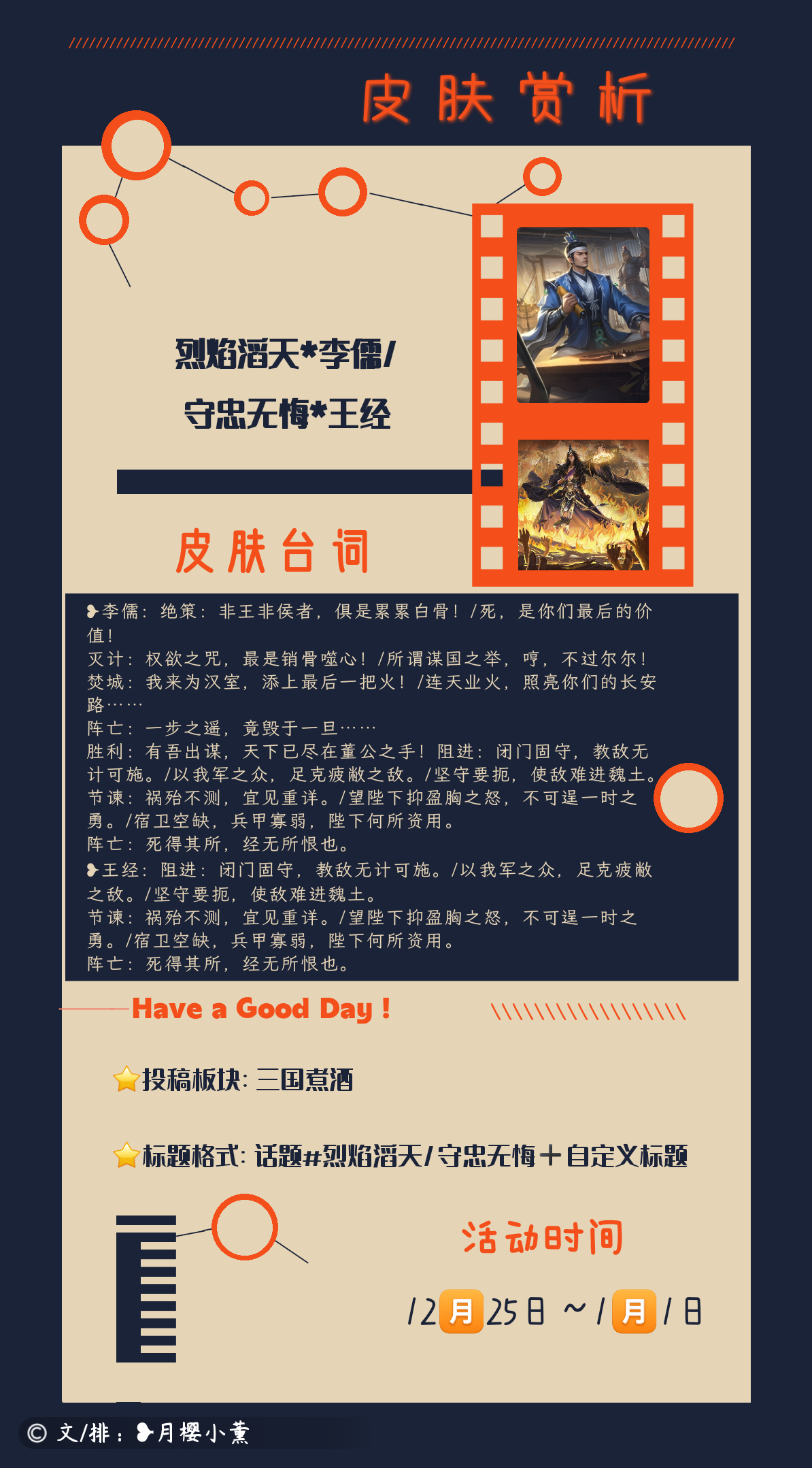 【咸话专栏】征集皮肤赏析:烈焰滔天*李儒/守忠无悔*王经