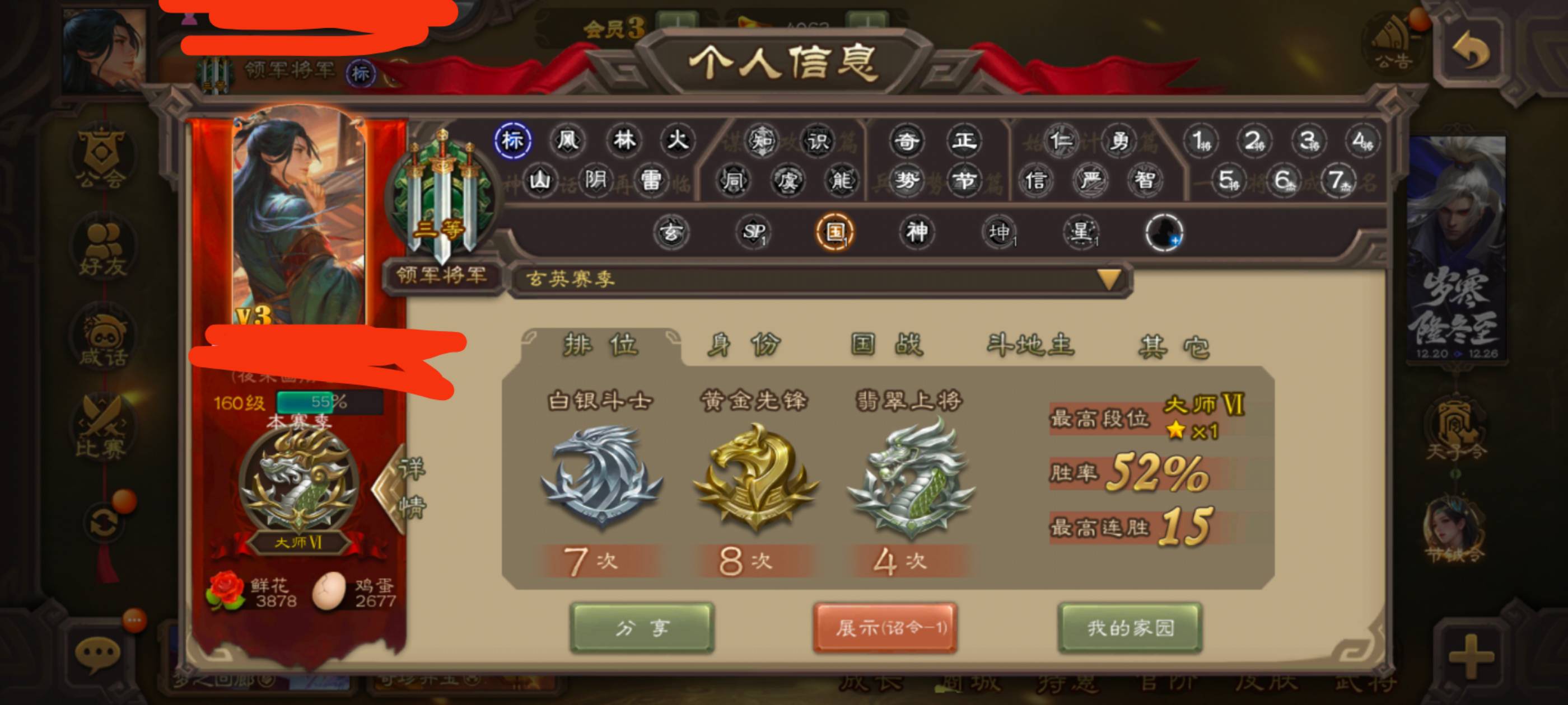 几乎零氪第一次上大师,以前高中的时候晚上上厕所玩一会三国杀,没太多空闲。现在上大学有时间肝这种乱七八糟的活动。前天第一次上大师,分享一下。