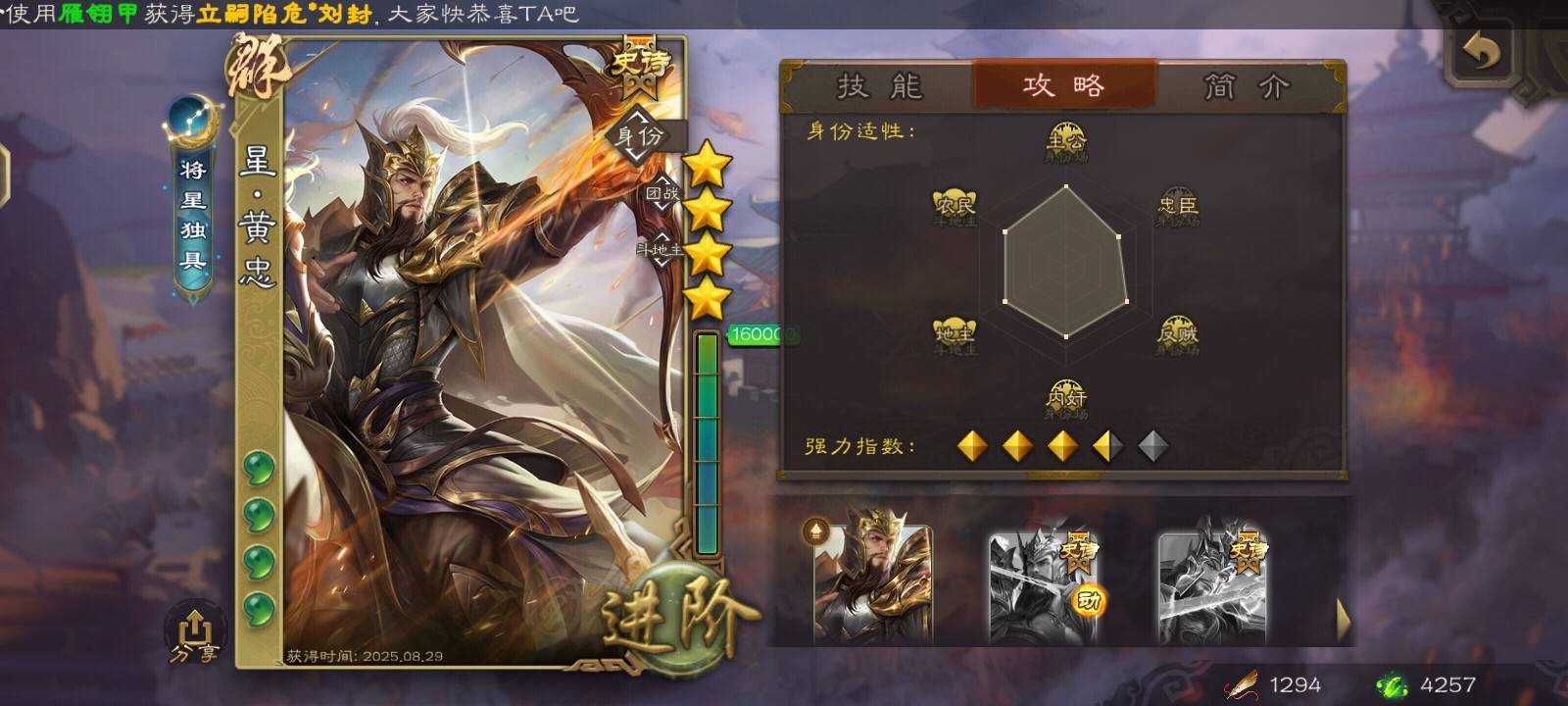 黄月英终于四星了