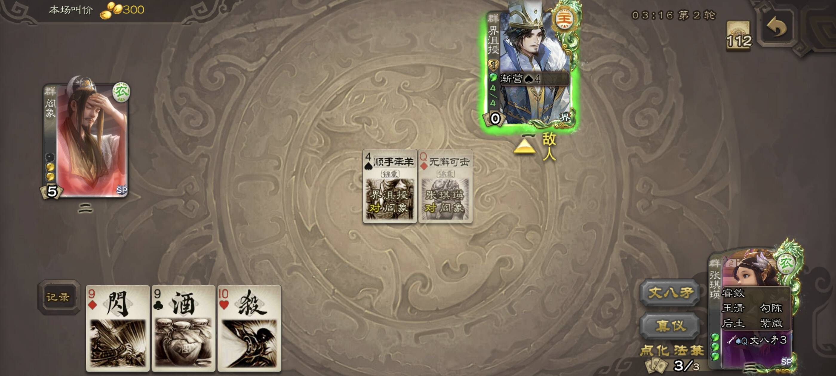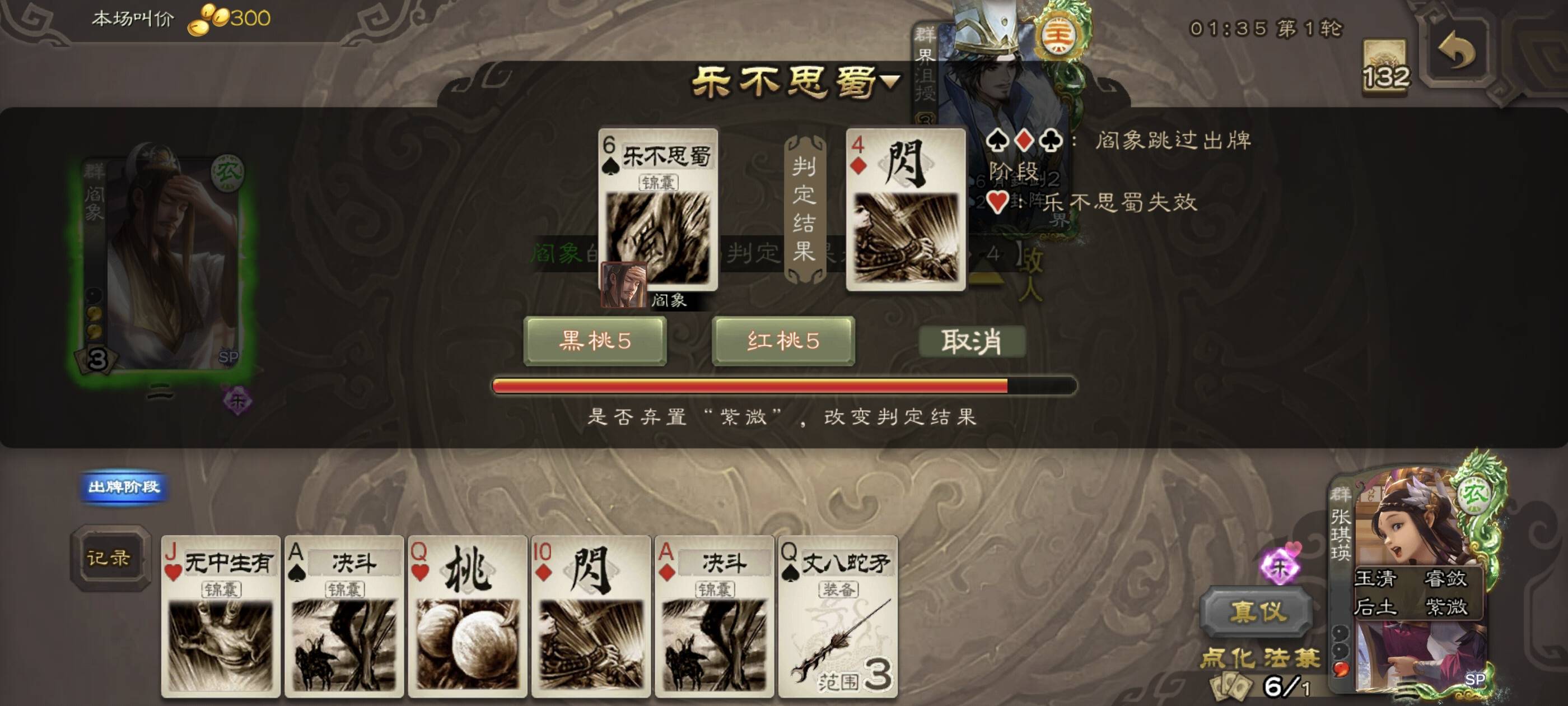 沮授大人一轮秒不掉还企图用两个乐抗一轮,可惜我直接改判,就算队友没过到顺拆无懈还能看两牌挣扎一下。