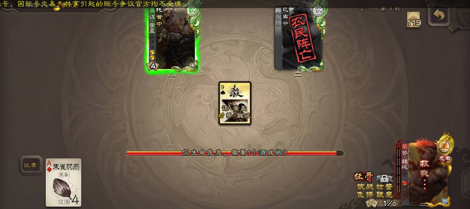 不敌入机,666,我开局的时候刷的杀用完就没有了呗,难评。#火龙果