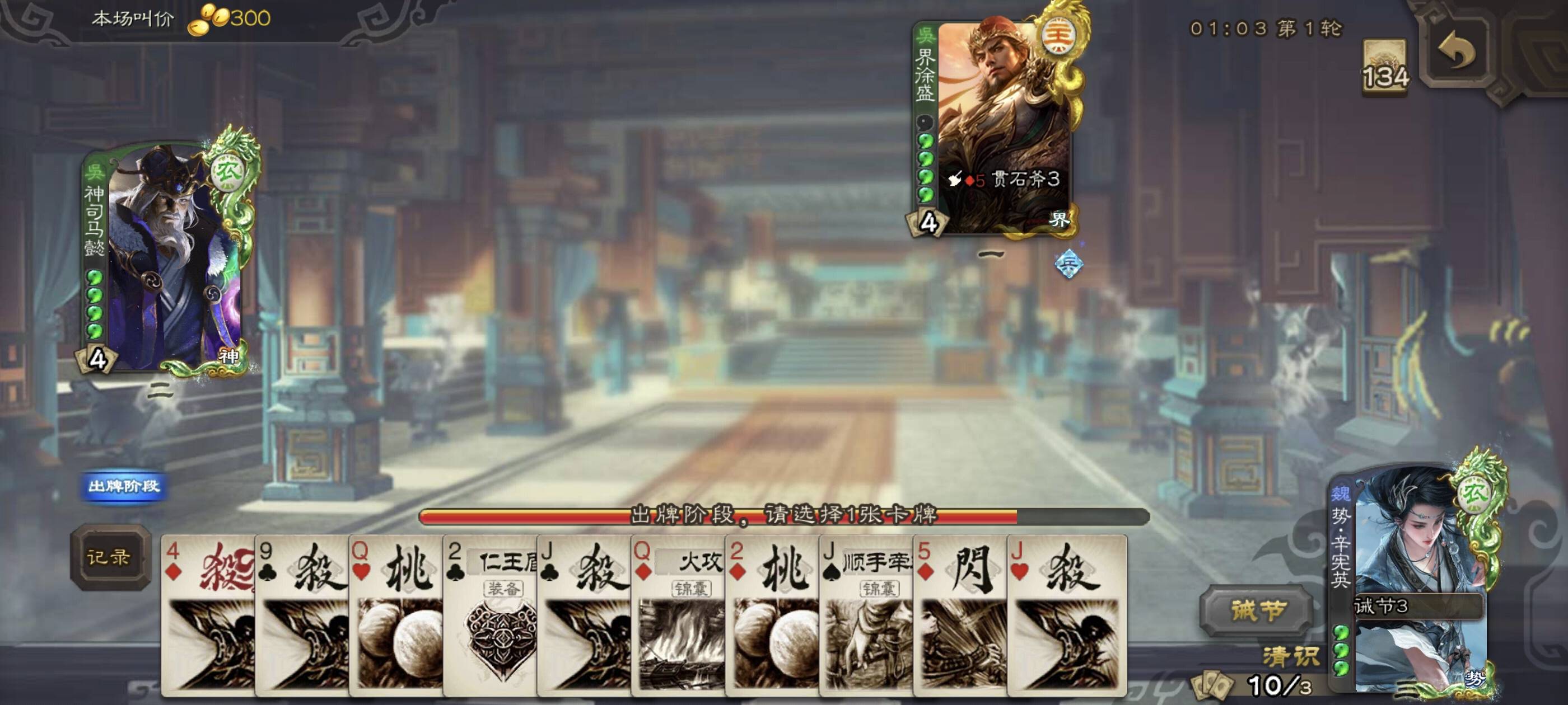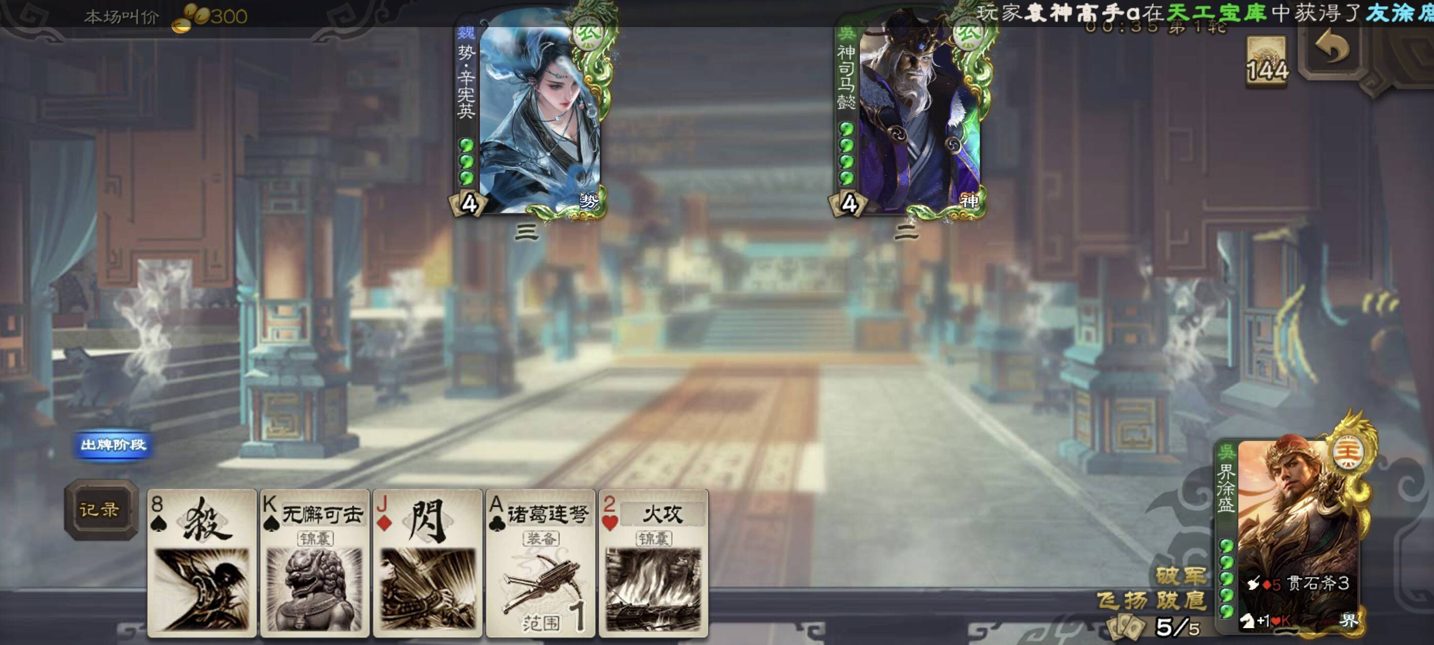 #我的年度女武将 爱将辛宪英没刷到好牌,幸好大宝贪AK只有一张杀。