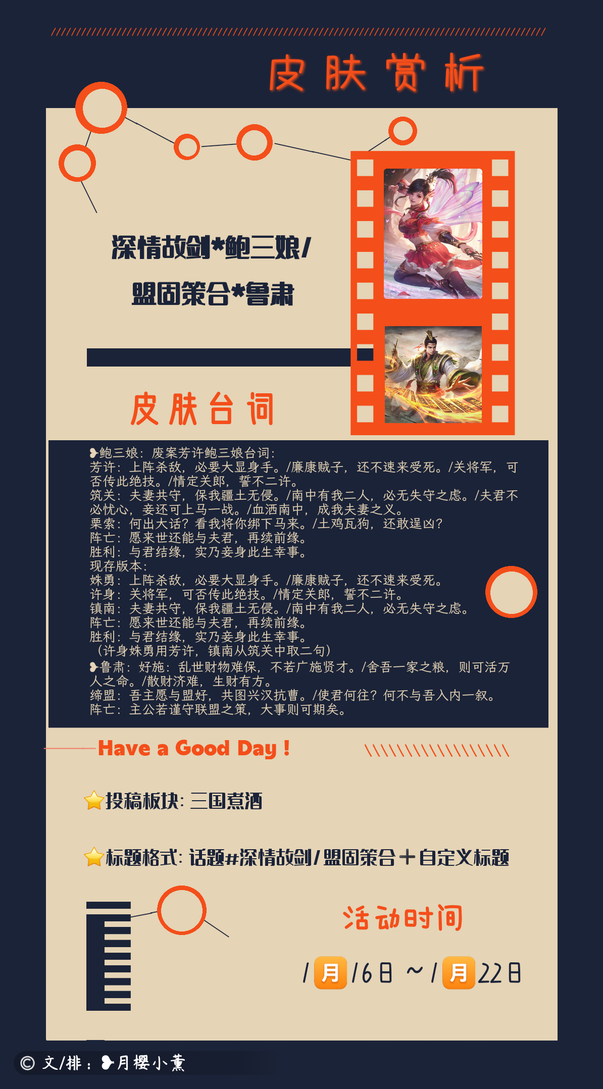 【咸话专栏】征集皮肤赏析:深情故剑*鲍三娘/盟固策合*鲁肃
