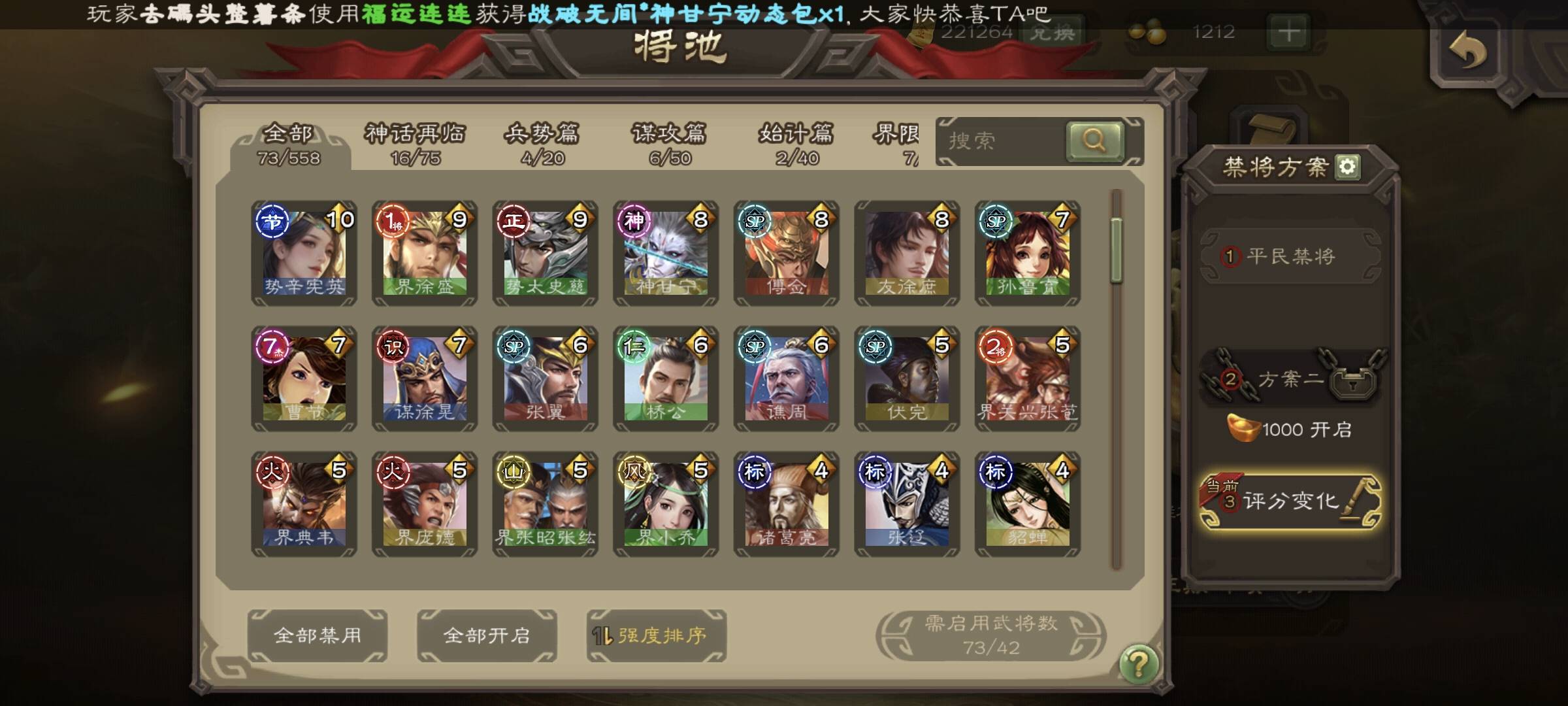 三国杀斗地主武将评分变化