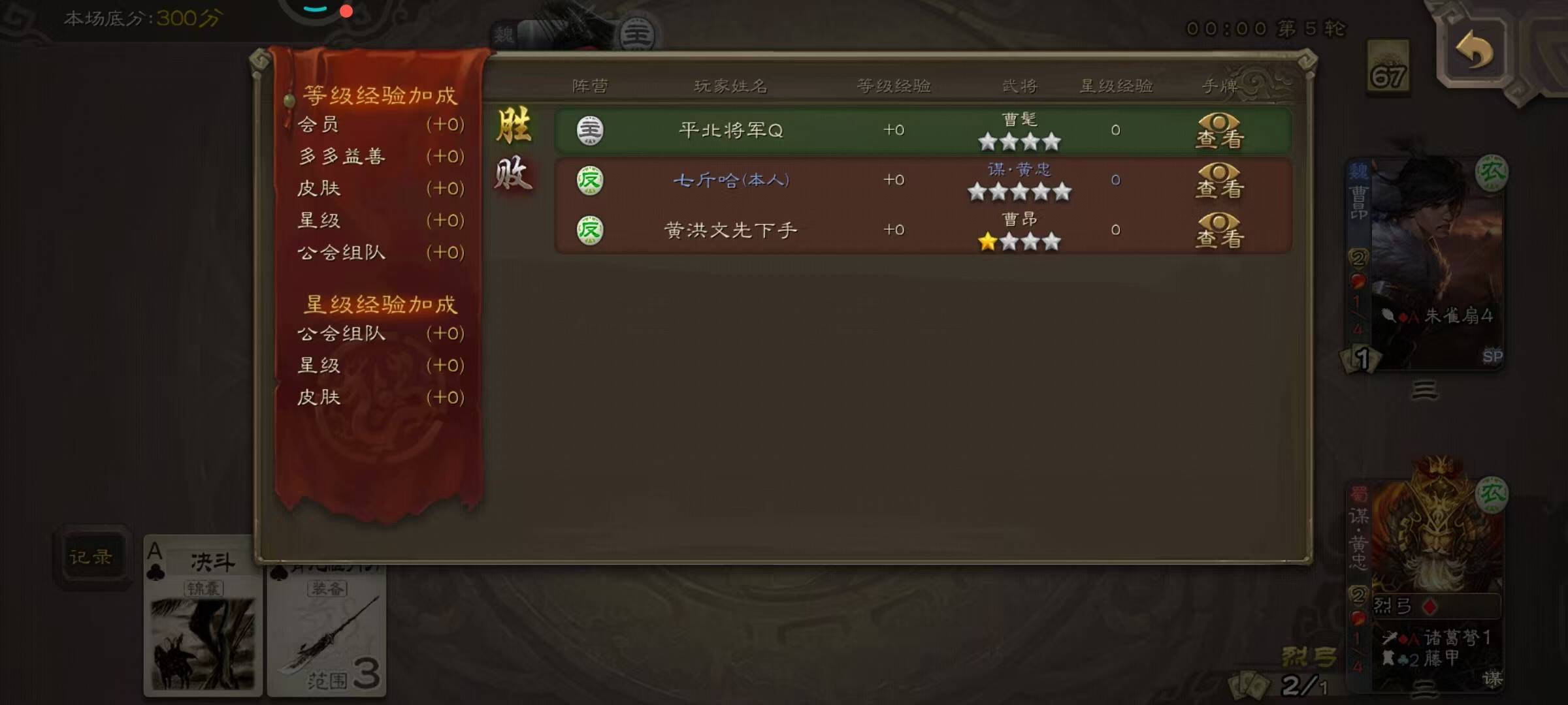 还剩5秒,曹髦被打死了,然后由于曹髦阵亡动画过长拖到了倒计时结束,被强制按分判负了。