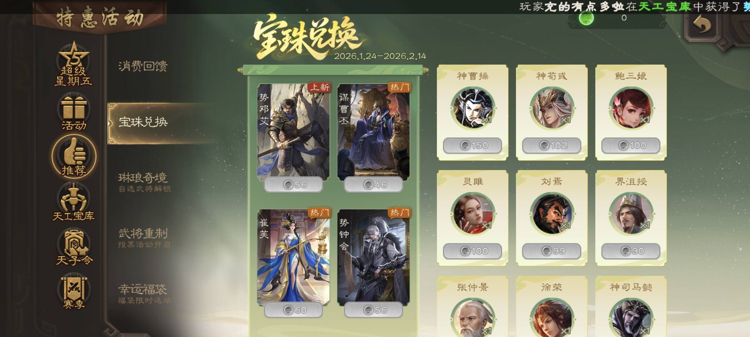 2,宝珠武将兑换界面