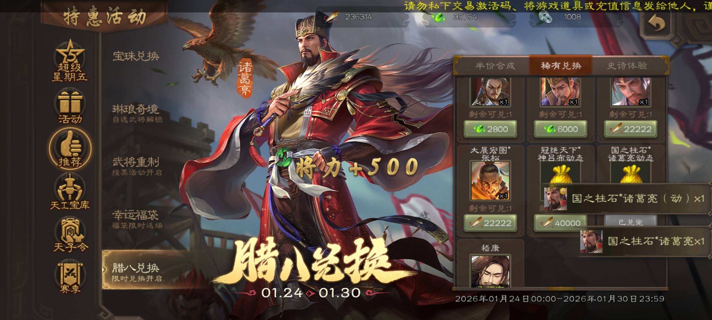 现在半价皮肤更新太慢了,羽毛都够换7个半价动了,就当为丞相买新衣服了
