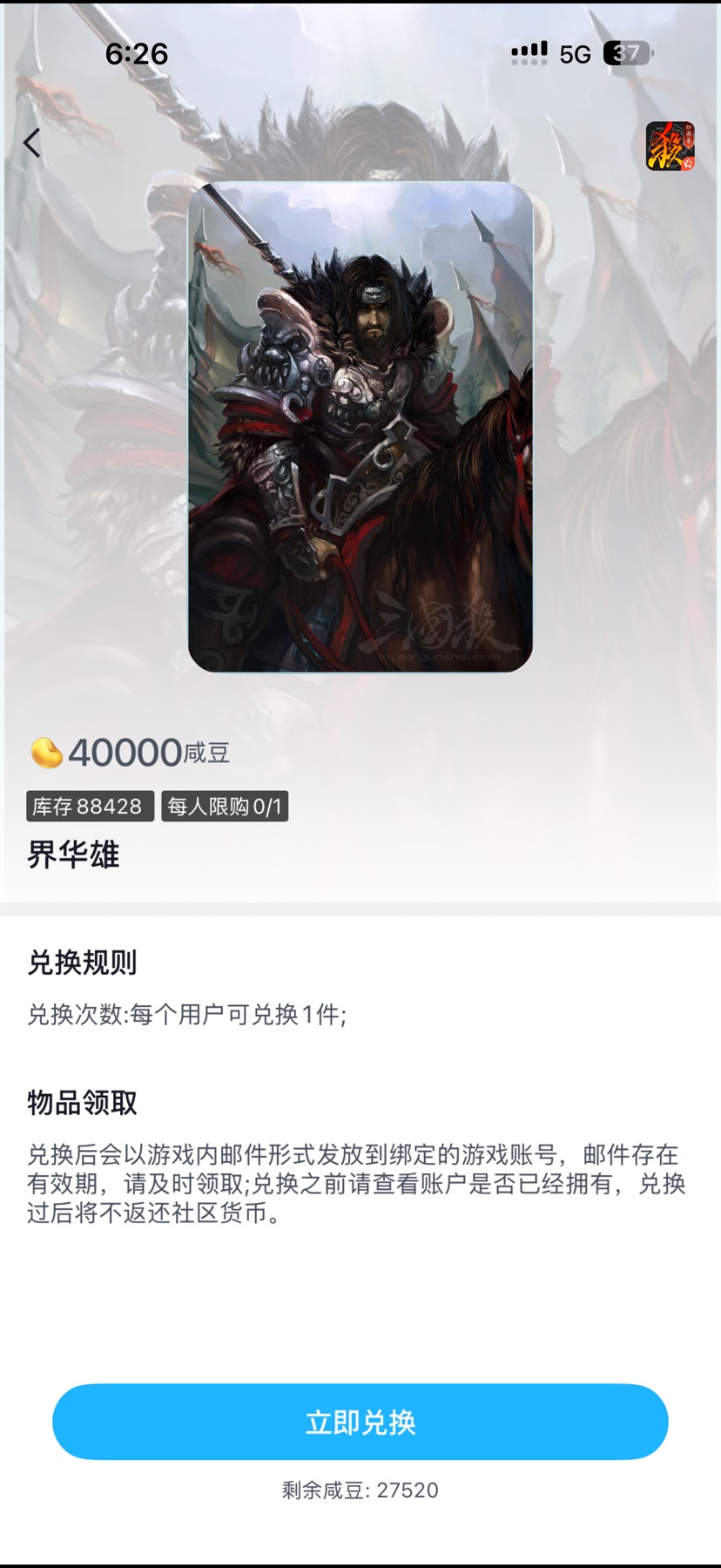 之前没有点灯的意识,导致错过了小程序的界华雄兑换。现在就差一个界华雄解锁1400将力,这等着咸话豆子换得等到猴年马月啊🥲 主要还没法买兑换码