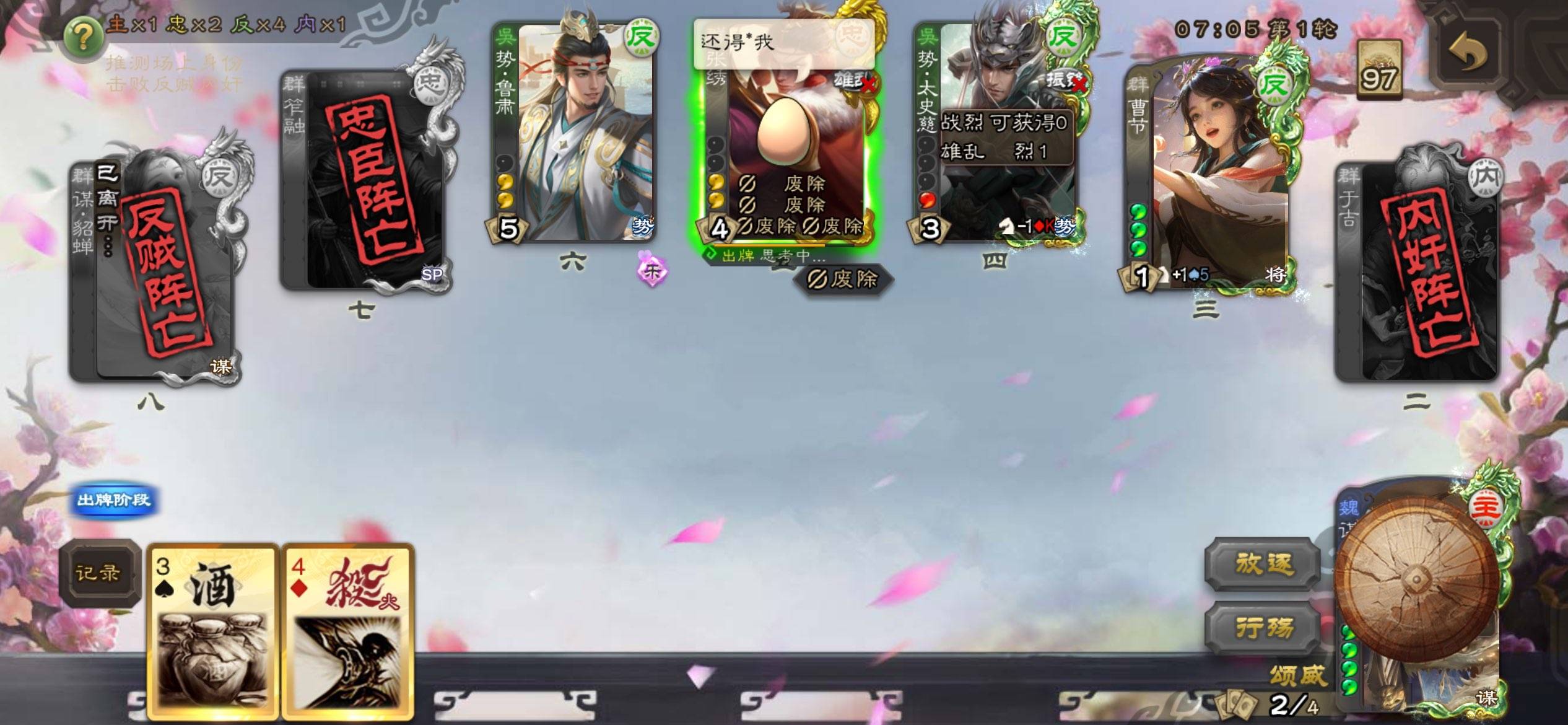 柿子局忠不选魏已经无所谓了,忠选张绣是个什么游戏理解我就不明白了,进回合雄乱绿太,把自己废了还没冲死,回合结束来了一句还不是要看我然后砸鸡蛋,我屏蔽他,跳反杀我,很搞笑了😅普通场我都不说什么了,至尊场这么玩家里老冯子怎么办啊