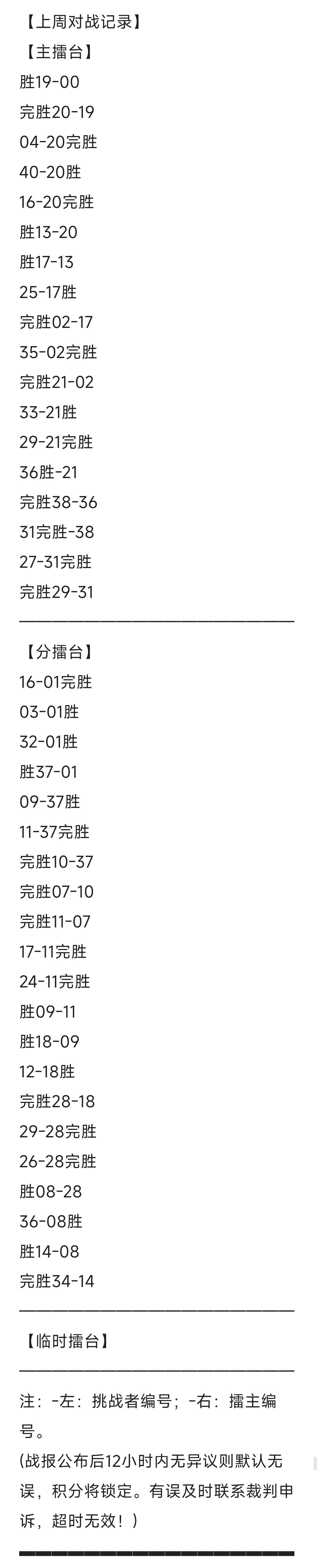 ◆关注我😜每周持续更新《擂台赛战报》