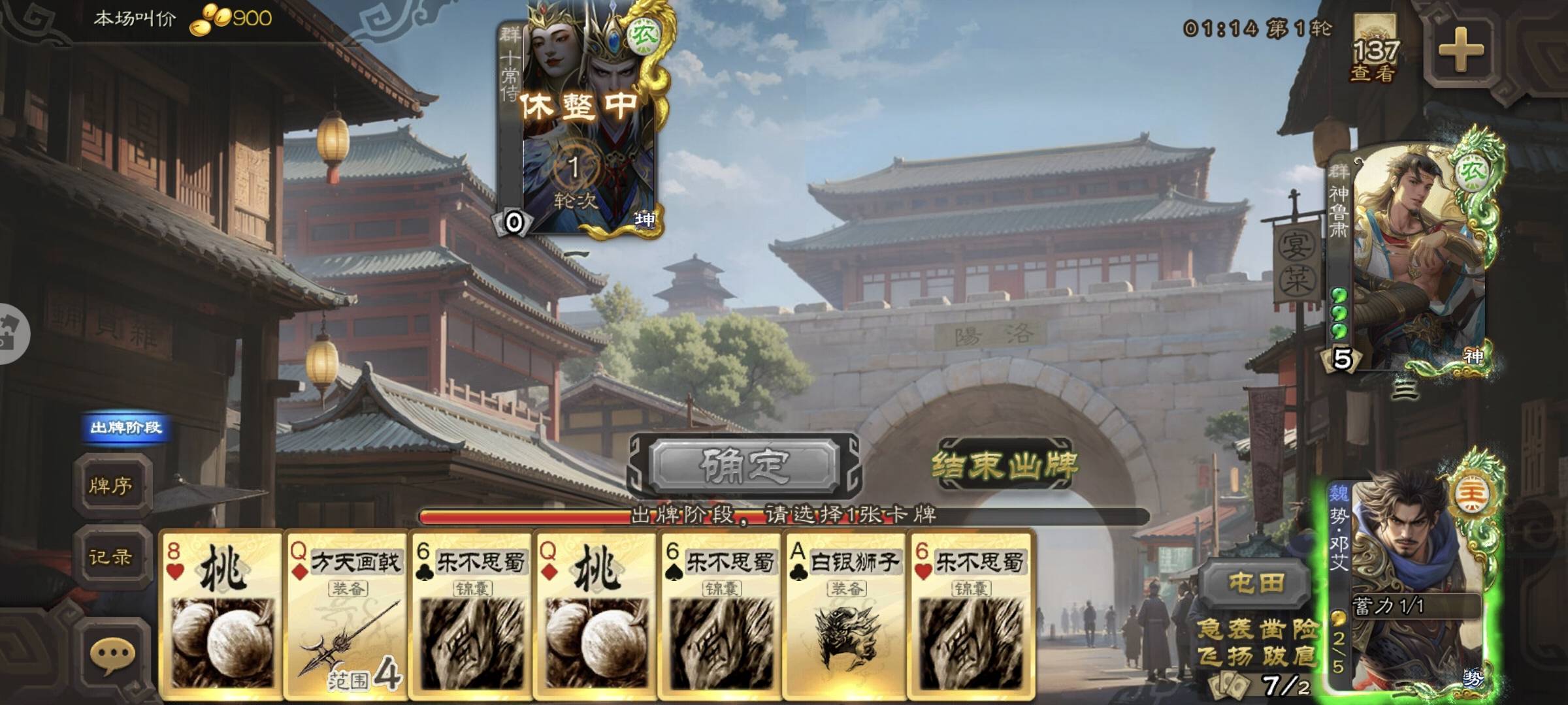 被十常侍段珪一刀干了三血,好痛😖进回合想要点防御牌,直接发两个乐,找个红桃又找到个乐,何意味?结果贴给鲁肃还天过了,唉....不知道说什么好。(其实天过最终对我还有利,这鲁肃用两个闪换走了我的装备,神人无处不在)
