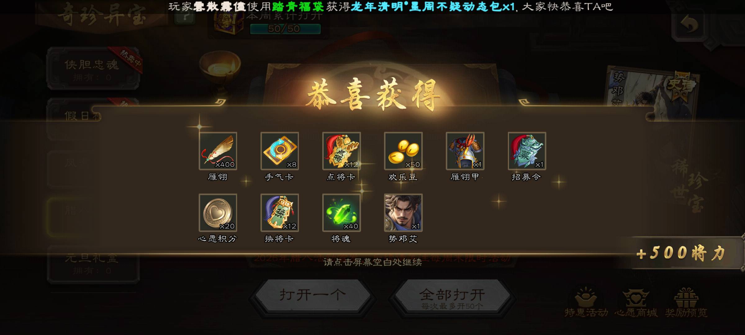 起因是心愿积分19600,五万元宝准备开盒子凑积分换神姜维