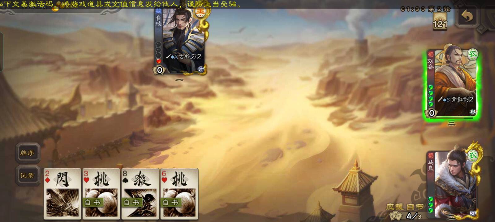 来自版块:三国煮酒校老弟就不要出来祸害人了行吗,什么叫给马良仁德,这个又是从那个三甲医院里跑出来的精神病人,哦你是说你不知道马良技能,那么好我解毕竟是新手,但你塔玛的第二轮在给我又是什么意思, 还有你塔玛的都有青釭剑了为什么还要去拆八卦阵,我想知道你在打出这个操作的时候是不是想起了你玛在你小时候给你喝的三鹿奶粉起作用了导致你打出这样神一般的操作,说真的兄弟你可以去打职业你去打三国杀职业比赛真的可以大显你那玩三国杀的绝顶才华#猪队友校尉 #三国杀 #锐评三国 #挂人避雷