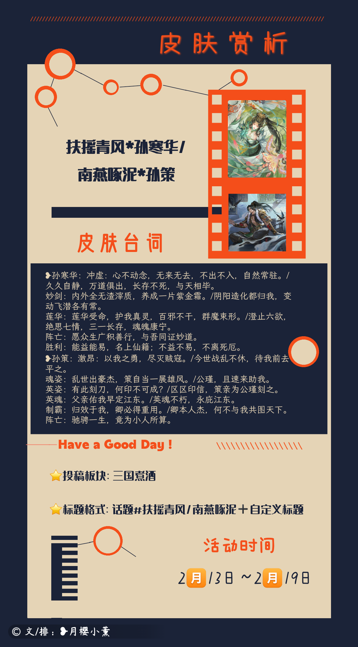 【咸话专栏】征集皮肤赏析:扶摇青风*孙寒华/南燕啄泥*孙策